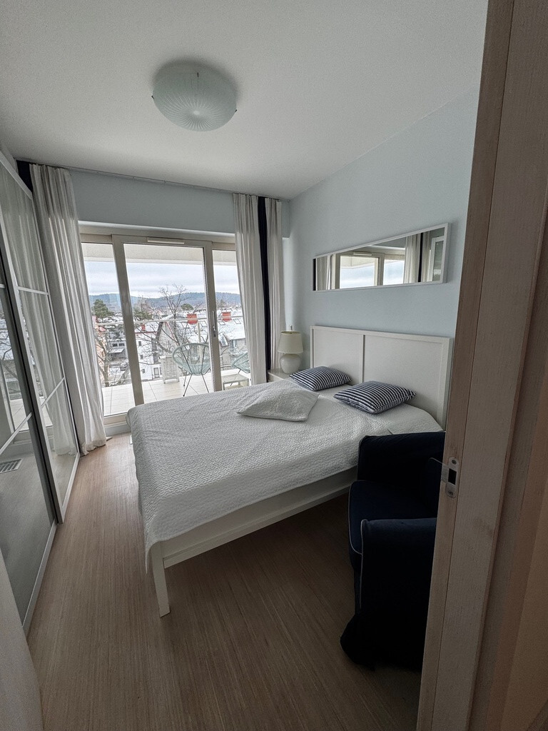 TOP-LAGE! – WUNDERSCHÖNER MEERBLICK DIREKT VON DER TERRASSE. Eine 3-Zimmer-Wohnung mit einer Fläche von 60,88 m2 besteht aus drei Zimmern und zwei Terrassen. Eine Terrasse mit einer Fläche von ca. 11,48 m2 mit direktem Meerblick, das zweite mit einer Fläche von 11,50 m2 mit Panoramablick auf die Stadt. Angebot zum Verkauf einer einzigartigen Wohnung in der prestigeträchtigen Anlage in Misdroy, direkt am Strand. Das Apartment befindet sich in der obersten (vierten) Etage eines modernen Gebäudes und bietet einen spektakulären Blick sowohl auf das Meer (Nordwestbalkon) als auch auf das Panorama der malerischen Stadt (Südostloggia). Innenbereich der Wohnung: Ein geräumiges Wohnzimmer, verbunden mit einer funktionalen Küche, ideal zum Entspannen und zum Verbringen gemeinsamer Zeit mit der Familie. Zwei helle Schlafzimmer auf der Ostseite sorgen für Ruhe und angenehmen Schlaf. Badezimmer mit moderner Dusche (Regendusche). Die Wohnung wurde im modernen Stil mit Liebe zum Detail gestaltet. Ausgestattet mit Geräten höchster Qualität, wie zum Beispiel: Fernseher mit Kabelfernsehen, WLAN. Voll ausgestattete Küche mit Backofen, Geschirrspüler, Waschmaschine, Kühlschrank mit Gefrierfach und Induktionskochfeld. geölte Holzböden. Gebäudeausstattung Tiefgarage mit eigenem Parkplatz (gegen eine zusätzliche Gebühr von 100.000 PLN). Entspannungsbereich mit Fitnessraum, Sauna und Duschen für die Bewohner. 24/7-Sicherheitsdienst und ein moderner Aufzug sorgen für Sicherheit und Komfort. Garten und Sonnenterrasse innerhalb des umzäunten Grundstücks. Lage Perfekt für Entspannung und Aktivität. Direkte Nähe zum Strand und einem ruhigeren Teil der Stadt. Der Radweg R-10 führt bis nach Deutschland, nur 200 m vom Gebäude entfernt. Zahlreiche Attraktionen in der Nähe, wie die Sternenpromenade, der Strand in Misdroy, das Wachsfigurenkabinett sowie malerische Aussichtspunkte und Seen. Warum diese Wohnung? Dies ist ein Ort für Menschen, die die Harmonie zwischen Entspannung und Aktivität suchen. Perfekt sowohl als Investition als auch als privater Zufluchtsort mit der besten Aussicht in Międzyzdroje. Lassen Sie sich diese Gelegenheit nicht entgehen! Kontaktieren Sie uns für weitere Details und um eine Präsentation zu vereinbaren. Die wichtigsten Annehmlichkeiten: Lage direkt am Strand Balkon und Loggia mit einzigartigem Blick auf das Meer und die Stadt Fitnesscenter, Sauna und Garten Kostenlose Tiefgarage mit Aufzug Ihr Platz an der Ostsee wartet!