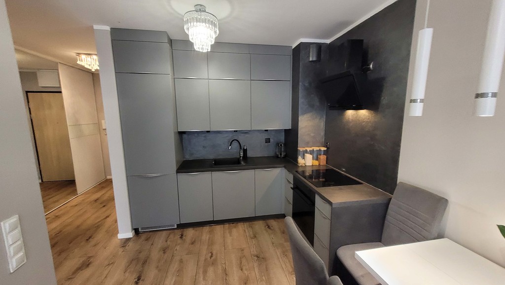 Zweizimmerwohnung im 3. Stock eines Neubaus (2022) mit Aufzug. Sie liegt in einem ruhigen Teil des Stadtteils Dąbie und ist dennoch gut an die Autobahn und öffentliche Verkehrsmittel angebunden. In der Nähe befinden sich ein Park, ein Wald, der Fluss Płonia und das Schwimmbad Dąbie. Ein Wohnzimmer mit Kochnische (17,62 m²) und ein Westbalkon. Die Küche ist mit Geräten ausgestattet und möbliert. Ein Schlafzimmer (9,42 m²) verfügt über ein Badezimmer mit gefliester Terrakotta-Toilette und Dusche. Ein großer, geräumiger Kleiderschrank erstreckt sich über die gesamte Länge des Flurs. Zwei Parkplätze vor dem Gebäude (je 25.000 PLN) sind im Preis inbegriffen. Der Kauf der Wohnung ist obligatorisch. Die Wohnung hat einen sehr guten Standard, ist gepflegt und geschmackvoll eingerichtet. Es besteht auch die Möglichkeit, sie als Anlageimmobilie mit einem Mieter zu erwerben.