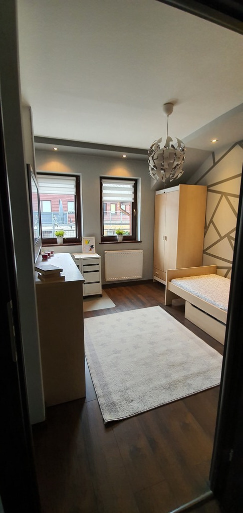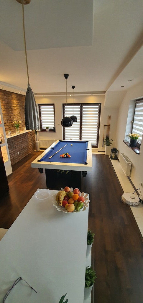 Diese Dreizimmerwohnung befindet sich im zweiten Stock eines Backsteingebäudes in der Kalinowa-Straße. Die nach eigenem Entwurf eingerichtete Wohnung macht einen sehr guten Eindruck. Wohnzimmer, Essbereich und Küche bilden eine Einheit. Die rechteckige Küche mit Kochinsel befindet sich in der Mitte, während sich rechts das Wohnzimmer mit Zugang zur Terrasse befindet. Links von der Küche befindet sich das Esszimmer. Die Eigentümer haben einen Billardtisch aufgestellt und mit einer Tischplatte abgedeckt. Dieses Möbelstück hat eine „Doppelfunktion“. Es dient als Essbereich, kann aber bei Bedarf abgenommen und als Billardtisch genutzt werden. Vom Esszimmer aus gelangt man auf eine weitere Terrasse. Der große Flur ist knapp 10 m² groß. Eines der Zimmer ist 10,10 m² groß, daneben befindet sich ein Badezimmer mit Badewanne und Toilette. Ein weiteres Zimmer ist 9,4 m² groß (ein Schlafzimmer) und verfügt über ein eigenes Badezimmer. Über der Wohnung befindet sich ein Dachboden von ca. 50 m² (vom Boden bis zur Decke gemessen). Wird derzeit als Lagerraum genutzt, könnte aber problemlos an die Wohnung angebaut werden, um einen zusätzlichen Raum zu schaffen. Die Miete für 3 Personen beträgt 500 PLN. Die Fernwärmeversorgung erfolgt über das Fernwärmenetz. Bis auf die Sitzecke und das Sofa im Wohnzimmer können die meisten Möbel im Preis enthalten bleiben. Die Nachbarschaft ist charmant und von Grünflächen umgeben. Geschäfte, eine Klinik und eine Schule befinden sich in unmittelbarer Nähe. Eine Bushaltestelle ist nur wenige Minuten entfernt. Zur Wohnung gehört ein Keller (5,6 m²). Ein Stellplatz in der Tiefgarage kann für 100.000 PLN erworben werden. Der Liefertermin ist verhandelbar. Dies ist ein exklusives Angebot. Sie sind herzlich eingeladen, vorbeizukommen.