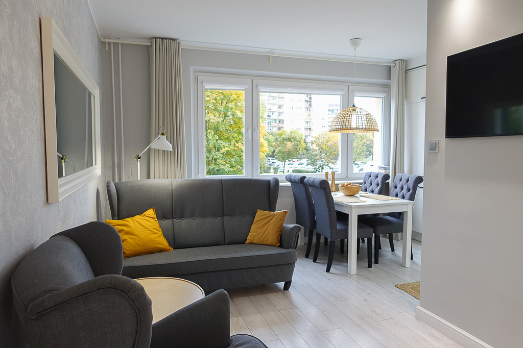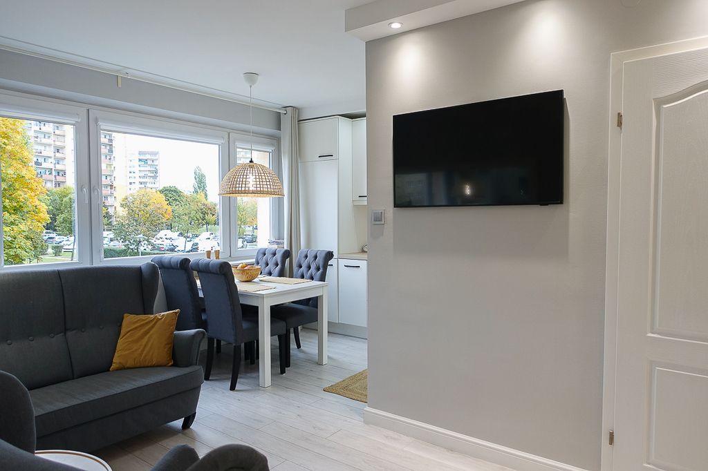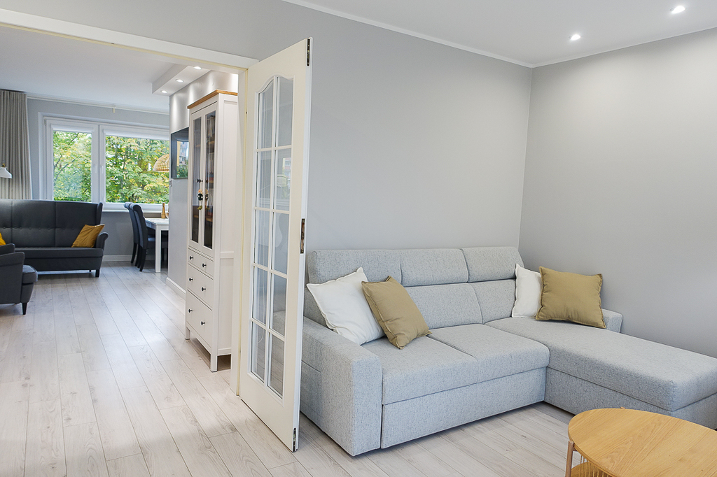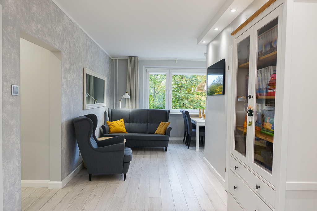 Eine wunderschön gestaltete, geräumige, moderne und komfortable 4-Zimmer-Wohnung, kürzlich renoviert, mit neuen Möbeln und Haushaltsgeräten ausgestattet, mit einem großen Balkon, ideal für den Morgenkaffee, mit Blick auf den nahegelegenen See und die umliegenden Bäume. Die Wohnung besticht durch einen großzügigen Grundriss dank der kombinierten Küche und des Flurs. Sie ist nach Nordosten und Südwesten ausgerichtet. Die Wohnung befindet sich im ersten Stock eines Flachbaus in der Jasna-Straße. Möbel und Geräte sind im Mietpreis enthalten. WOHNUNGSBESCHREIBUNG: * 16 m² großes Zimmer mit einem 5,6 m² großen, möblierten Balkon, der vom Flur aus durch eine Doppeltür zugänglich ist. * 16,8 m² großes, L-förmiges Zimmer mit Kochnische und einem gemütlichen Essbereich, entstanden durch die Kombination von Wohnzimmer und Küche mit einem Fenster. Alternativ könnte die vorherige Raumaufteilung ein separates Wohnzimmer und eine separate Küche mit Fenster schaffen. Die Küche verfügt über neue Einbaumöbel, darunter ein Geschirrspüler, ein Gasherd mit Elektrobackofen, eine moderne weiße Dunstabzugshaube und ein Einbaukühlschrank mit Gefrierfach. * Zwei Zimmer: ein 10,6 m² großes Schlafzimmer und ein 8,1 m² großes Arbeitszimmer. * Das Badezimmer wurde komplett renoviert und verfügt über eine Dusche, ein WC mit Geberit-System, einen großen Spiegel, ein Waschbecken mit Unterschrank, eine eingebaute Waschmaschine sowie Regale für Handtücher, Haushaltschemikalien etc. Ein Wäschetrockner kann hier aufgestellt werden. Das kombinierte Badezimmer mit WC hat eine renovierte Fläche von 4,7 m². * Ein 5,5 m² großer Flur, ein Zimmer mit Balkon und ein 10,6 m² großes Zimmer befinden sich auf der Südwestseite, während das Zimmer mit Kochnische und das kleinste Zimmer nach Nordosten ausgerichtet sind. Neue PVC-Fenster, neue Bodenbeläge, neue Möbel und Geräte. Neue, helle und moderne Türrahmen. Glatt gestrichene Wände. Miete: 740 PLN, Fernwärme, Stadtwasser. GEBÄUDEBESCHREIBUNG: Dieses vierstöckige Gebäude wurde in den 1980er Jahren in Fertigbetonbauweise errichtet. Es ist wärmegedämmt. Die Wohnungsgenossenschaft plant, die Balkone zu erneuern und die Fassade zu reinigen. UMGEBUNG: In der Nähe befindet sich eine Baustelle in Puszcza (einem ehemaligen Waldgebiet). Die Infrastruktur ist gut ausgebaut, es gibt Geschäfte, Schulen, Kindergärten und öffentliche Verkehrsmittel (Busse). Ich empfehle diese Immobilie, da sie einen sofortigen Einzug in eine möblierte und ausgestattete Wohnung ermöglicht.