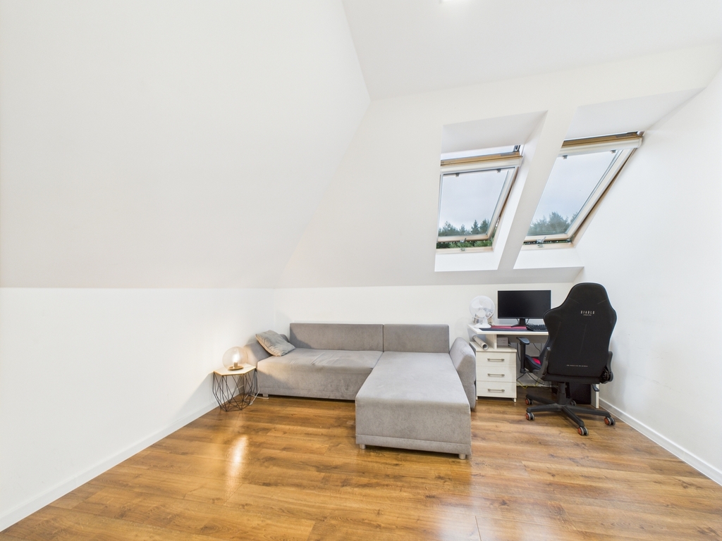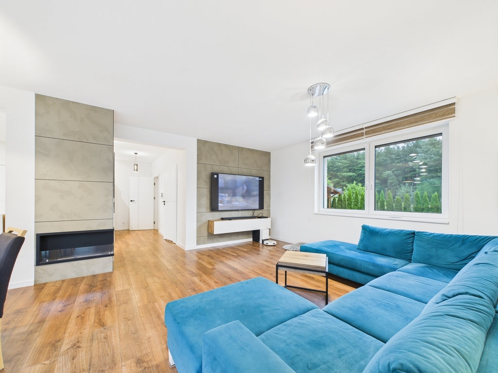 Wir laden Sie ein, dieses außergewöhnlich schöne Haus direkt am Waldrand im Dorf Jęczydół zu erkunden . Das 2019 auf einem 1.124 m² großen Grundstück in ruhiger und abgeschiedener Lage direkt am Wald erbaute Haus besticht durch sein elegantes, modernes Design und hochwertige Materialien. Komfort, Platz und Privatsphäre sind in diesem Haus garantiert. Das Haus befindet sich in einwandfreiem Zustand und erfordert keine zusätzlichen Investitionen. Einbaumöbel und -geräte sind im Preis inbegriffen. Weitere Möbel sind verhandelbar. Grundriss: Eingeschossiges Gebäude mit Dachgeschoss. Auf der Nutzfläche von 173,97 m2 – gesamt 285,47 m2 – befinden sich: Im Erdgeschoss: – elegantes und geräumiges Wohnzimmer mit Biokamin, großen Panoramafenstern mit Zugang zur Terrasse und zum Garten – Esszimmer und Küche mit einer Gesamtfläche von ca. 50 m2 – mit Einbaumöbeln und Haushaltsgeräten – Speisekammer – Badezimmer mit WC, Dusche und Fenster – Vorraum – Flur – Heizungsraum – Einzelgarage Im Dachgeschoss: – Zimmer (mit einer Fläche von 13,31 m2) mit Kleiderschrank (4,44 m2) – drei Zimmer (mit Flächen von 13,33 m2, 11,14 m2 und 9,85 m2) – Badezimmer mit WC, Dusche, Badewanne und Fenster (9,78 m2) – zwei Hauswirtschaftsräume (mit Flächen von 1,43 m2 und 6,11 m2) – Flur Zusätzlich ein nicht nutzbarer Dachboden, ideal als Lagerraum Weitere Annehmlichkeiten : Heizung und Warmwasser über eine Gastherme. Fußbodenheizung im gesamten Haus. Kanalisation. Ferngesteuertes Eingangs- und Garagentor. Warum lohnt es sich? Dies ist der ideale Ort für alle, die Ruhe und Privatsphäre schätzen, und die Inneneinrichtung ist perfekt für alle, die Komfort und Eleganz zu schätzen wissen. Ausgezeichnete Lage . Die Promenade am Miedwie-See ist 15 Gehminuten entfernt. Ein wilder Strand ist 6 Gehminuten entfernt. Das Zentrum von Stettin (28 km) ist mit dem Auto ca. 28 Minuten entfernt. Das Zentrum von Stargard (12 km) ist ca. 18 Minuten entfernt. Wald und zahlreiche Gebiete für Sport- und Freizeitbegeisterte. Zögern Sie nicht und vereinbaren Sie einen Besichtigungstermin. Sie werden sich in diesen Ort verlieben, und eine solche Gelegenheit bietet sich vielleicht nie wieder. Kontaktieren Sie mich.