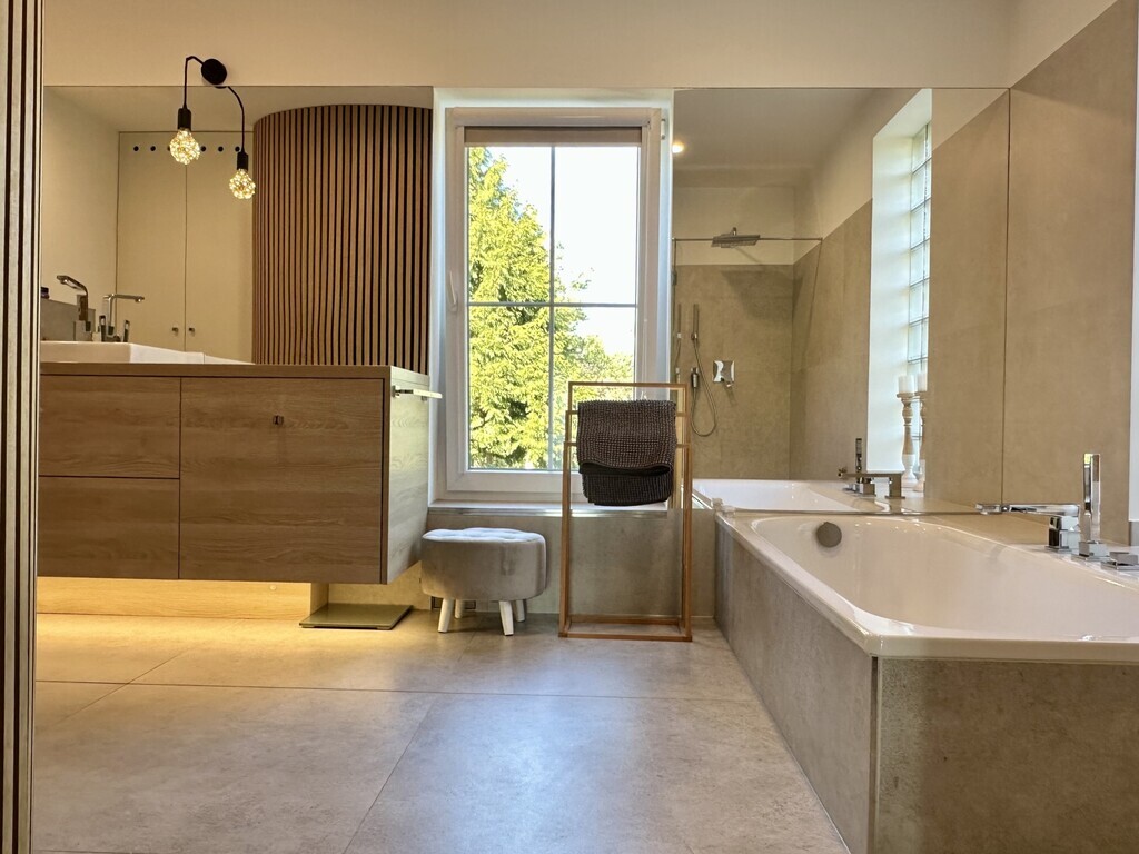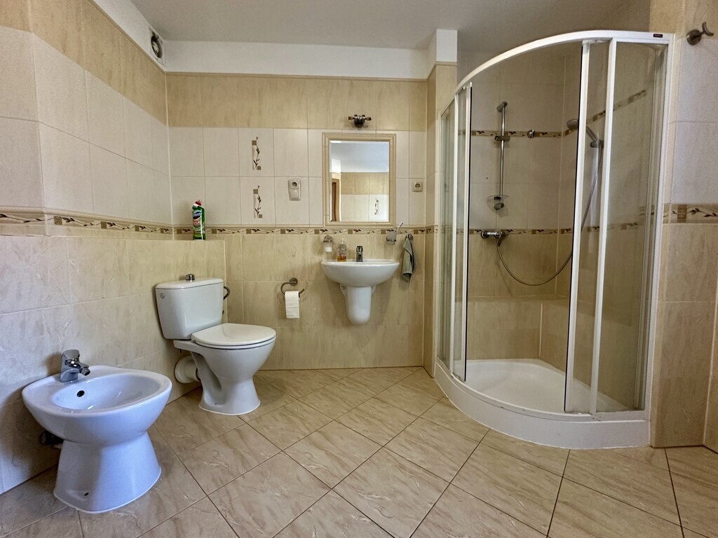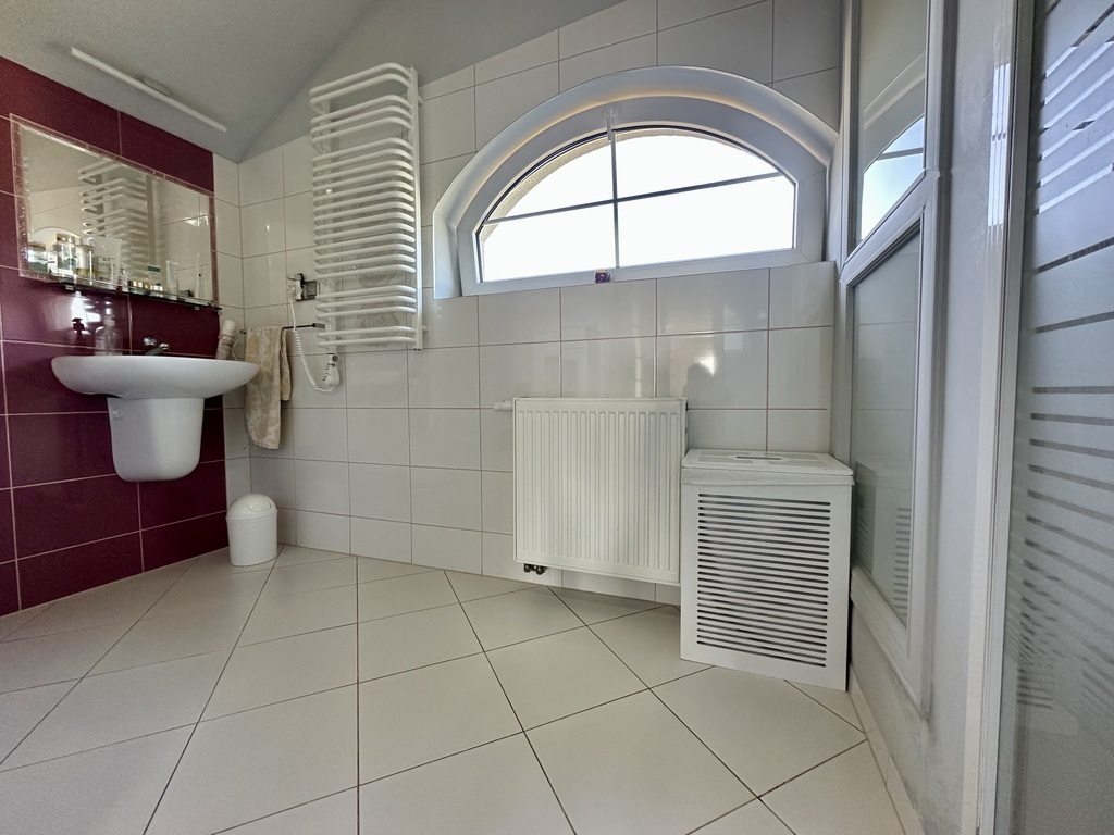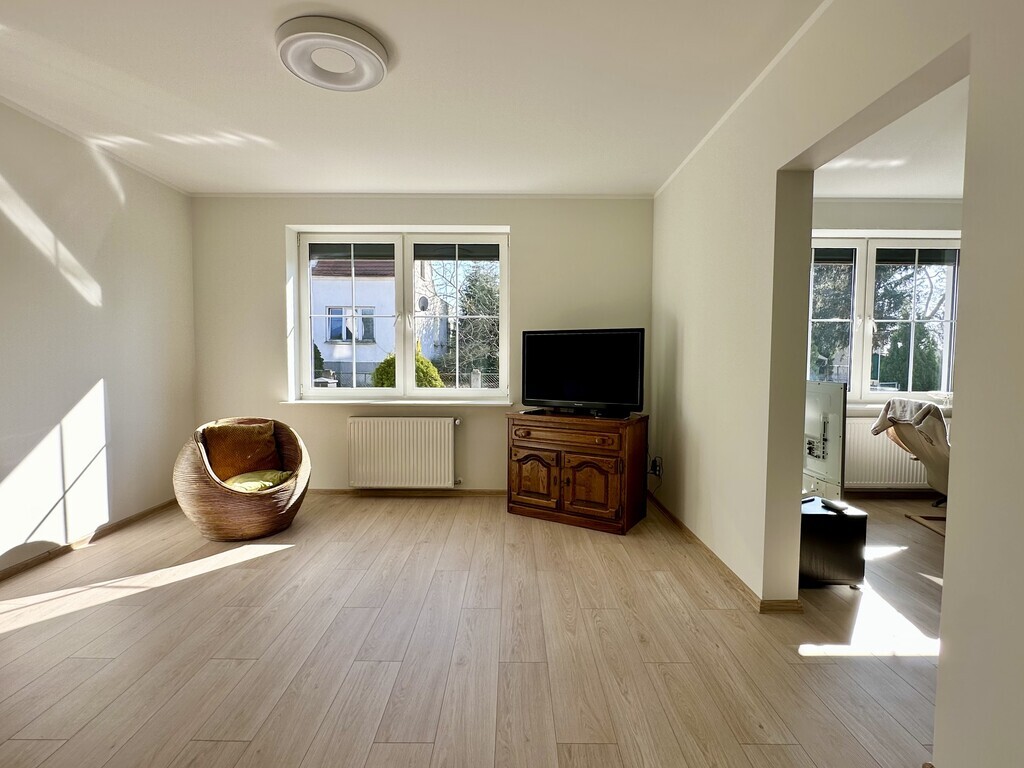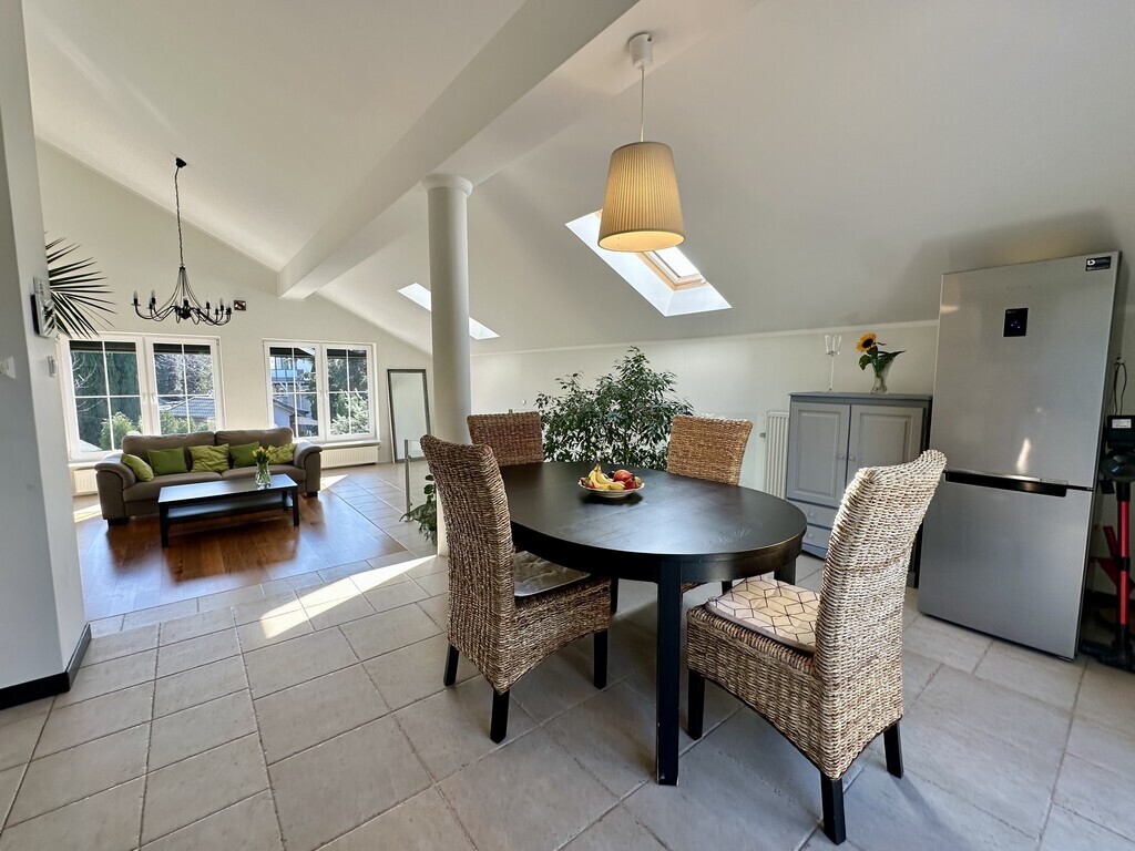 Zum Verkauf steht ein geräumiges Einfamilienhaus mit Doppelgarage im Gebäude. Das Grundstück mit einer Fläche von 246 m² (insgesamt 330 m²) befindet sich in einem der renommiertesten Viertel von Stettin – Warszewo. Das Grundstück, auf dem sich das Haus befindet, hat eine Fläche von 1200 m², wovon 600 m² von der Stadt gepachtet sind (Kaufmöglichkeit). Das Haus wurde 2010 erweitert und kann daher als Mehrgenerationenhaus (Zweifamilienhaus) oder für die Führung eines Gewerbes genutzt werden. Es verfügt über separate, bequeme Eingänge zu zwei Wohnungen, die durch eine Treppe verbunden sind. Ein großer Vorteil des Hauses ist die 2021 installierte Photovoltaikanlage sowie die Isolierung von Gebäude und Dach. Im Dachgeschoss wurden eine Klimaanlage, ferngesteuerte Jalousien an den Fenstern und ein zentraler Staubsauger installiert. Einige Zimmer verfügen über Fußbodenheizung. TEIL I DES HAUSES: ERDGESCHOSS: Räumlichkeiten mit einer Fläche von 64,90 m2 (Wohnung) sind so durchdacht, dass sie den Bedürfnissen geschäftlicher Aktivitäten oder älterer Menschen gerecht werden. Daher die offenen, barrierefreien Räume zur eigenen Gestaltung und das Badezimmer. Die Nutzfläche der Wohnung besteht aus: – Wohnzimmer 15,60 m2; – Zimmer 15,60 m2; – Zimmer 16,10 m2 – Fußbodenheizung (ehemals Küche); – Badezimmer 7,70 m2; – Vorraum 5,9 m2; – Flur 4,0 m2 – Fußbodenheizung (von hier aus können Sie die Treppe zur zweiten Wohnung nehmen). KELLER (33,50 m2): – Flur 4,20 m2; – Heizungsraum 9,60 m2; – Speisekammer 4,90 m2; – Beheizter Raum 14,80 m2. II. HAUSTEIL – erweitert: ERDGESCHOSS (17,60 m2): – Flur mit Korridor 15,00 m2; – Toilette 2,60 m2; – Treppe zum 1. Stock; – Abstieg zur Garage 38,70 m2. ERSTER STOCK (121 m2): – Wohnzimmer 38,70 m2; – Küche 18,40 m2 – Fußbodenheizung; – Fernsehzimmer 10,20 m2; – Schlafzimmer 18,00 m2; – Gästezimmer 13,50 m2; – Badezimmer 11,90 m2 – Fußbodenheizung + Wand; – Korridor 13,00 m2. DACHBODEN 42,30 m2 (insgesamt 52,30 m2): – Zimmer (offener Raum) 36,60 m2; – Badezimmer 5,70 m2. Das Haus verfügt über einen großen Balkon mit Steinzeug und eine 18 m2 große Terrasse aus Verbundplatten. Der Garten hinter dem Haus bietet Ruhe und Frieden. In der Nähe des Wkrzańska-Waldes, der Szczecińska Gubałówka und der Arkonka. Bequemer Zugang zum Stadtzentrum ca. 3,5 km. Ich lade Sie zur Präsentation EXKLUSIV ein