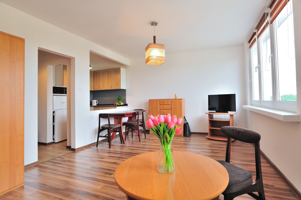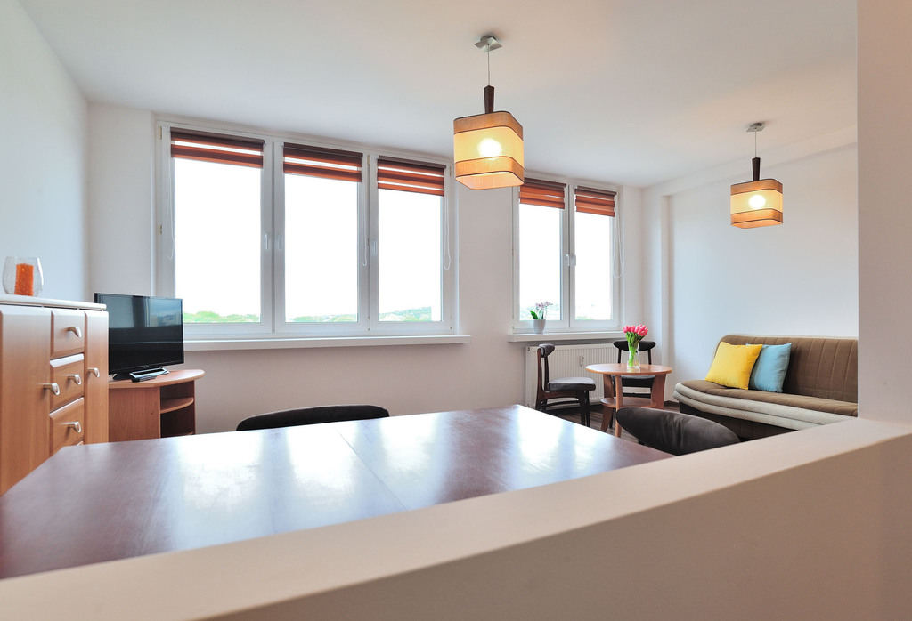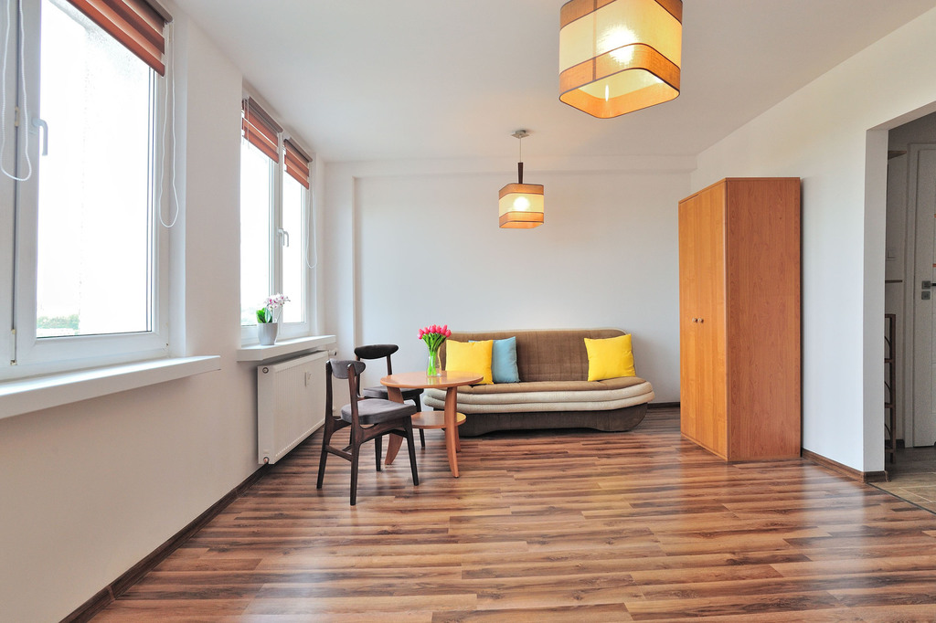 Wir bieten exklusiv ein Studio-Apartment zur Miete in der Niemierzyńska-Straße in der Wohnsiedlung Niebuszewo an. Verfügbar ab 1. März. Beschreibung des Apartments: Ein komfortables und helles Studio-Apartment steht zur Vermietung bereit. Das Apartment befindet sich im obersten Stockwerk eines 10-stöckigen Hochhauses und ist komplett möbliert und ausgestattet. Die Wohnfläche beträgt 27,37 m². Heizung und Warmwasser werden vom städtischen Netz bereitgestellt. Das Apartment besteht aus einem Wohnzimmer, einer offenen Küche, einem Badezimmer mit WC und einem Flur. Das Badezimmer ist mit Dusche, Waschbecken, Waschmaschine, WC und Handtuchheizkörper ausgestattet. Das Wohnzimmer verfügt über ein Schlafsofa, einen Kleiderschrank, zwei Tische mit Stühlen und zwei Kommoden, von denen eine einen Fernseher beherbergt. Die Küche ist mit Möbeln, einem Kühlschrank mit Gefrierfach, einem Zweiflammen-Elektroherd, einer Mikrowelle und einem Wasserkocher ausgestattet. UMGEBUNG: In der Nähe der Wohnung befinden sich das Museum für Technik und Kommunikation, der Kasprowicz-Park, der Technopark Pommern sowie zahlreiche Geschäfte und Dienstleistungsbetriebe (Bäckerei, Friseur, Frog und Drogerie). Eine Nachtbus- und eine Straßenbahnhaltestelle sind nur 110 Meter entfernt, eine Tagesbushaltestelle 350 Meter. KOSTEN: Bei pünktlicher Zahlung beinhaltet die Miete von 1.700 PLN ca. 675 PLN Verwaltungskosten zuzüglich Stromkosten nach Verbrauch. (HINWEIS: Ab dem 1. August erhöht sich die Miete um 100 PLN.) Besichtigungen sind willkommen; die Schlüssel befinden sich im Büro.