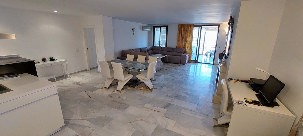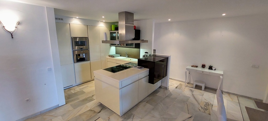 If you dream of your own wonderful place on earth, where the temperature is pleasant, the sun is almost always shining, the whole year is green and the water in the sea is wonderfully warm, then I have such a place for you. We offer a wonderful apartment for sale in Marbella in the south-west of Spain, 40 km from the airport in Malaga and by the apartment I mean a real apartment, not a 30 square meter flat for the price of a luxury house. The apartment itself consists of a huge living room with an open plan fully equipped with top-class Silestone appliances and a furnished kitchen, dining and seating area, a conservatory, two bedrooms with separate wardrobes and bathrooms, an outdoor terrace and a garden. The apartment has a parking space in a double garage. The apartment is located on the high ground floor of a 4-story building, and the building is in a wonderfully landscaped, 2-hectare gated estate. Stunning vegetation, a garden and a beautiful swimming pool complete this unbelievable sight. From the terrace you will see a panorama of the mountains and the Mediterranean Sea on the right. The views are spectacular. Now a little about the equipment and furnishings. As already mentioned, the kitchen is fully equipped and will satisfy even the most demanding cook. In stock there is a refrigerator with a freezer, a convection oven, a five-ring induction cooker, a microwave oven, a dishwasher, a two-chamber sink, a coffee machine, a hood with an extractor hood, kettles, grinders, juicers, complete sets of dishes and cutlery and many, many other kitchen gadgets. The kitchen is furnished according to an individual project. The dining room is equipped with a huge eight-seater table and eight chairs, the living room overlooking the mountains is equipped with a fireplace, the bedrooms are fully equipped and furnished, as are the wardrobes. The bathrooms are fully furnished and equipped, I will not describe them, I suggest you look at the photos. There is marble on the floor throughout the apartment, which allows you to keep the interior pleasantly cool on hot Spanish days. In addition, all rooms have fan coil units that cool in summer and can heat up in winter. But I don't think I will bore you with descriptions anymore. Take a look at the photos and video. If you want to learn more about the area itself, I invite you to watch the material hidden at this link: https://hispanico.pl/marbella/#google_vignette