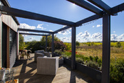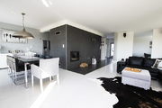 A house for sale, situated in the picturesque town of Moczyły, 15 minutes from the center of Szczecin in the Kołbaskowo Commune. The house is situated on a slight hill, which provides a great view. The location of the property is an exceptionally quiet, picturesque place, filled with the beauty of the surrounding nature, which ensures harmony and tranquility after an exciting day of work and duties. The place is conducive to rest and recharging the battery, relaxation after returning home, which is known to ensure greater efficiency and creativity every day. A detached, one-story house with an unused attic, without a basement, covered with a steep roof. The architecture of the building, simple, modern, rectangular shape covered with a roof with an extended garage for two cars. The entire form of the building is in mixed colors. The whole thing gives a great visual effect. Partly aluminum and gray PVC joinery. On the south side, a wooden terrace was made, with wooden poles serving as a substructure for unfastening the sailcloth in the summer. The house is extremely functionally designed, the arrangement of the rooms provides freedom, comfort and peace to every member of the household, thanks to the arrangement of the sleeping zone (bedrooms, bathrooms, wardrobes) and the utility zone (living room, office, kitchen and dining room) in two extreme parts of the house. The house is beautifully finished with high-quality materials. The house is decorated in a modern and very tasteful manner. Entrance to the house through a nicely decorated hall with a large built-in wardrobe, to a spacious living room with a fireplace and an exit to the terrace from where there is a view of a beautifully landscaped garden with plantings of flowers and shrubs and wonderful views of the nature of the surrounding landscapes, a living room connected with a dining room from which it passes to the kitchen with the pantry. Living room connected with the office. From the living room there is a corridor to the next rooms of two children's rooms for which a bathroom and a dressing room are dedicated. A bedroom with a dressing room with a bathroom with a sauna, bathtub, shower, washbasin and toilet. The house also has a room for the technical infrastructure of a heat pump, a laundry room, and a double garage. List of rooms: – entrance corridor – living room, dining room, kitchen – pantry – study – laundry room – bathroom (bathtub, washbasin, toilet) – room 1 – room 2 (a partition wall between the rooms with the possibility of its demolition) – bedroom with a separate wardrobe and bathroom equipped with a bath, shower, sauna, washbasin and toilet – dressing room – utility room – double garage Surfaces: – building area 252.14 m2 – usable area 181.99 m2 – garage area 36.18 m2 – building length 19.87 m – building width 17, 86m – ground floor level 36.55m above sea level. The plot has an area of 2192m2, beautifully landscaped with plantings, trees, shrubs and flowers. The spreading scent of lavender, the sight of blooming flowers and varied colors of nature, singing of birds and the sight of beautiful butterflies will melt the heart of even the most ardent tetrician. A plot similar to a rectangle stretches from the northwest to the southeast. On the plot, along the driveway, there are a separate box for dogs and a utility facility for wood and farm equipment, the whole thing looks very impressive thanks to the use of demolition bricks for construction, which gives the character of a combination of rustic style with modernity, which ensures a wow effect. A gazebo with a fireplace overgrown with vegetation with a banquet table and a barbecue gives the feeling of spending time in Mediterranean holiday destinations. An extremely friendly and pleasant place to spend time together during romantic dinners and lively talks with friends and family. – a greengrocer giving the opportunity to grow your own Eco food with an outbuilding for garden equipment. The area from the side of the access road with a brick fence made of demolition bricks with a wooden entrance zone, along its longer sides a mesh fence and a partly wooden fence from the district road (Moczyły – Kamieniec). Entrance and entrance to the property through a sliding gate and a wicket with an intercom. Technology and materials used: The entire building is set on continuous footings. At the level of the benches, a band drainage was made with the drainage of the system towards the drainage reservoir. Foundation walls th. 24 cm, made of B25 concrete blocks. insulated with 8-10 cm thick extruded polystyrene, covered with dimpled foil. External and construction walls made of YTONG system cellular concrete blocks, thickness 36.5 cm and 40 cm in the garage on the manufacturer's thin adhesive mortar. Part of the internal walls is made of SILKA blocks, thickness: 18cm. Internal partition walls 12 cm thick made of YTONG system cellular concrete. YTONG lintels and system beams. A gable roof with a sheet metal roof in seam panels by Pruszyński. External walls finished with silicone plaster on which a substructure for a wooden facade made of boards with