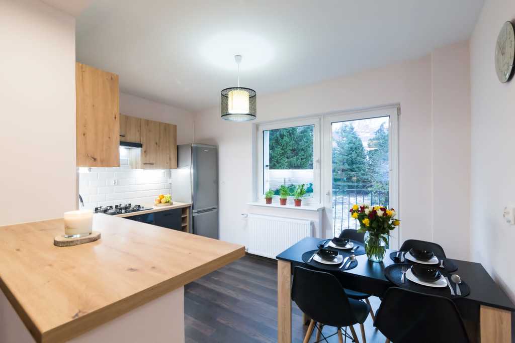 For rent a terraced house in a higher standard in Pogodno. The usable area of the house is about 100m2, total 110m2. A garden of approx. 200m2 is available. Renovated house, clean and tidy. Situated on a quiet street, close to the main communication routes, including about 500 m from the modern Łękno junction at Al. Polish army. Ease of quick access to any area in the city, both by car and public transport, from nearby stops. On the ground floor there is a 10m2 kitchen with a dining room (now after renovation), a 30m2 living room with a fireplace and a vestibule. From the kitchen there is an exit to the balcony and to the garden. Panels on the floor. The fireplace also heats the rooms above, by air. On the first floor there is a 25m2 bedroom and a bathroom with toilet, bathtub and shower. Washing machine available. The 2nd floor is a large room with access to a 10m2 terrace. The house is completely refreshed, ready to move in. Furnishings as in the photos. A third room for your own arrangement. The house has a garage, but it can be borrowed as a courtesy. The rent for the house is PLN 4,999. Additional fees according to consumption according to meters (electricity, gas, water) + garbage disposal. Gas heating and fireplace (air supply to two bedrooms). In the heating season, about PLN 1000/month in the coldest months. A minimum one-year contract in the form of an occasional lease is preferred. We will consider every customer. Lease terms to be agreed. Immediate release date.