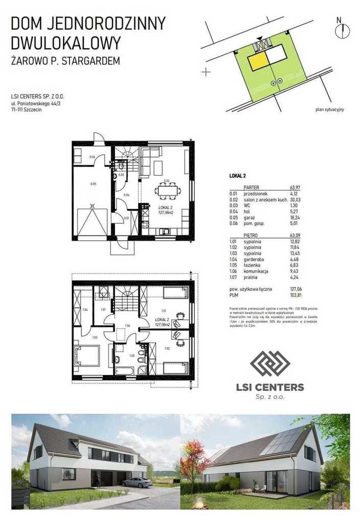 House for sale 127 m²ŻarowoZachodniopomorskieHES27469 10160709 679 000 PLNPrice m²: 5 346,46 PLN Price m²5 346,46Total area127 m²Usable area127 m²Price m²No. of rooms4Number of floors1MaterialOtherBuilding conditionPerfectConditionNeeds finishingGarageYesLot area500 m²Driveway typeHardenedElectricityYesWaterYes