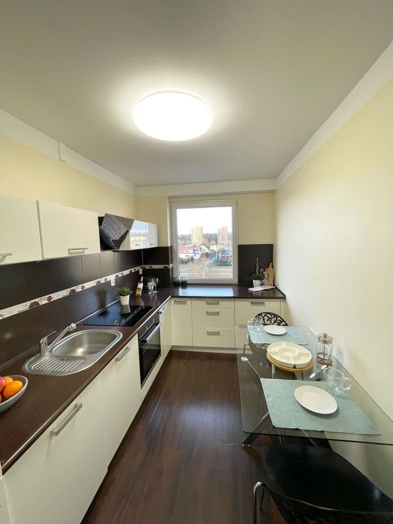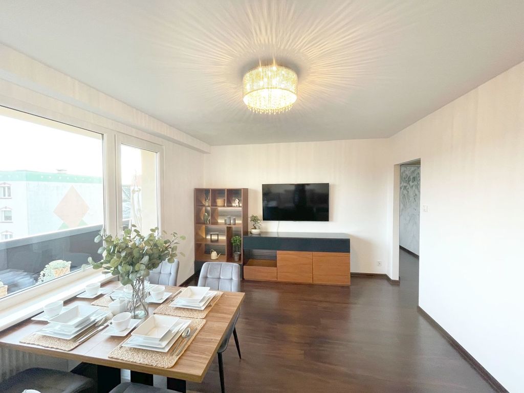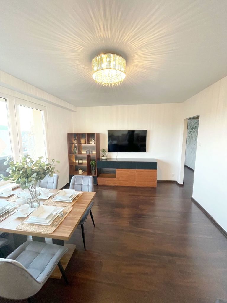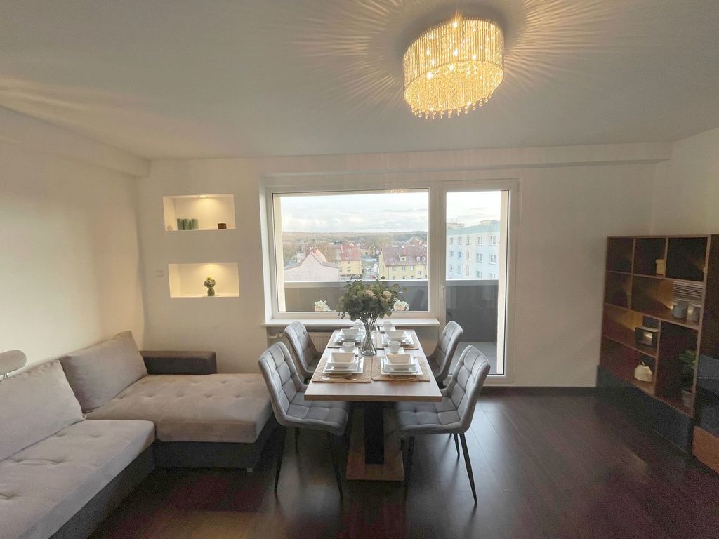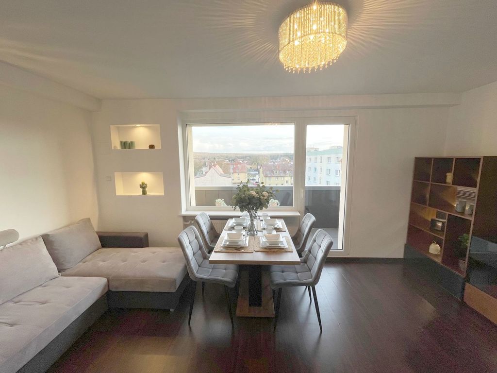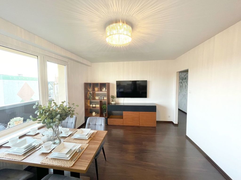 We offer for sale a very attractive, renovated 3-room apartment located in an insulated 4-storey block. The apartment consists of a living room with access to a large, beautifully arranged balcony, the walls in the apartment are smoothed and painted. On the floors in the rooms and hall there are uniform panels, bathroom and toilet separately finished with glaze and terracotta. uPVC windows. In the smallest room, built-in wardrobes along the entire wall. The price of the apartment includes all furniture and equipment of the apartment, including a washing machine and a dryer, visible in the pictures (except decorative equipment). Nearby shops, school, kindergartens, playgrounds, city market, very close to public transport. Price negotiable. I invite you to the presentation.