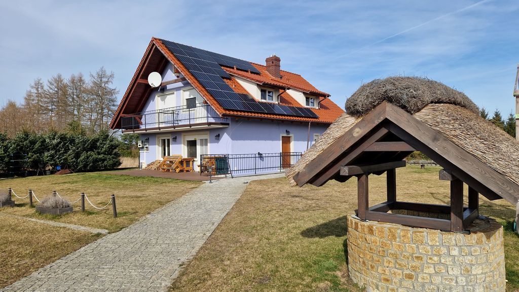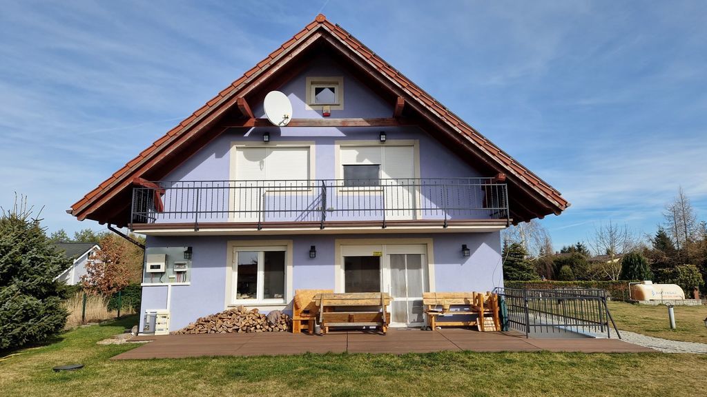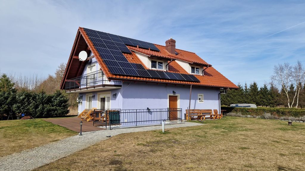 Kołczewo. Detached house in a great location: 3 km. from the sea, close to Wisełka, next to the lake and golf course, 30 km from Świnoujście New property, built in 2022. 3-level building, with a total usable area of 245 m2 (total 270 m2), located on a plot of approx. 1034 m2. The ground floor with a usable area of approx. 78 m2, which consists of a hall and four rooms with their own bathrooms. The first floor with an area of approx. 78 m2 (small slants in places), consisting of four rooms. All rooms with bathroom and balcony. Attic for adaptation with the possibility of furnishing two rooms. Ground floor (full height) with an area of less than 110 m2, consisting of a large kitchen (20 m2), dining room (30 m2) and two utility rooms. From the ground floor there is an additional exit to the outside of the building. The entire facility is fully equipped with furniture and all kinds of equipment necessary to receive guests all year round. The building is very solidly constructed; made of porotherm, concrete ceilings, insulated with graphite styrofoam (20 cm), the roof insulated with wool gr. 30cm. Heating and hot water from the LPG tank and photovoltaics. The sewage system is connected to a large closed tank (septic tank). Water from own deep well. Electrical installation 230V and power. Distributed alarm system throughout the building. Illumination of the entire area. Distributed multimedia installation throughout the facility. The house is located on a nicely developed plot of the area. 1034 m. Fenced area; with designated parking spaces, a playground for children and a barbecue area. Green area with automatic irrigation system (powered by own well). Kołczewo is a place where you can find peace and rest, well connected by new national and provincial roads. Slightly away from the Baltic Sea, you can go to the beach on foot (scenic trails among the trees), or by bike using numerous bicycle paths. Price is negotiable. I recommend and invite you to the presentation.