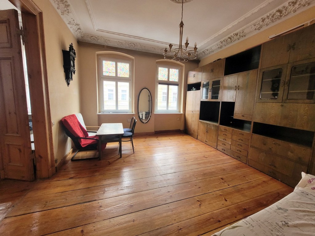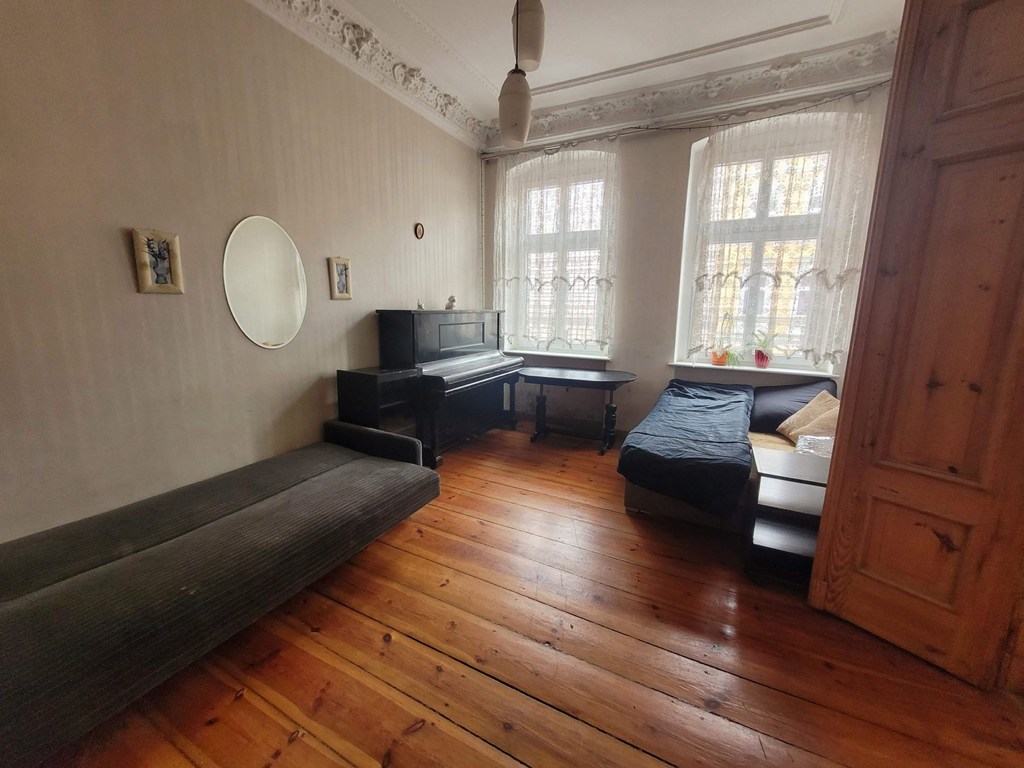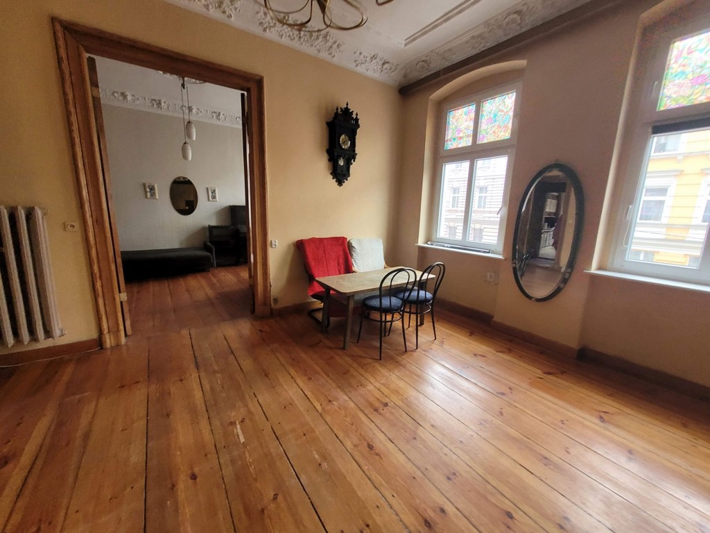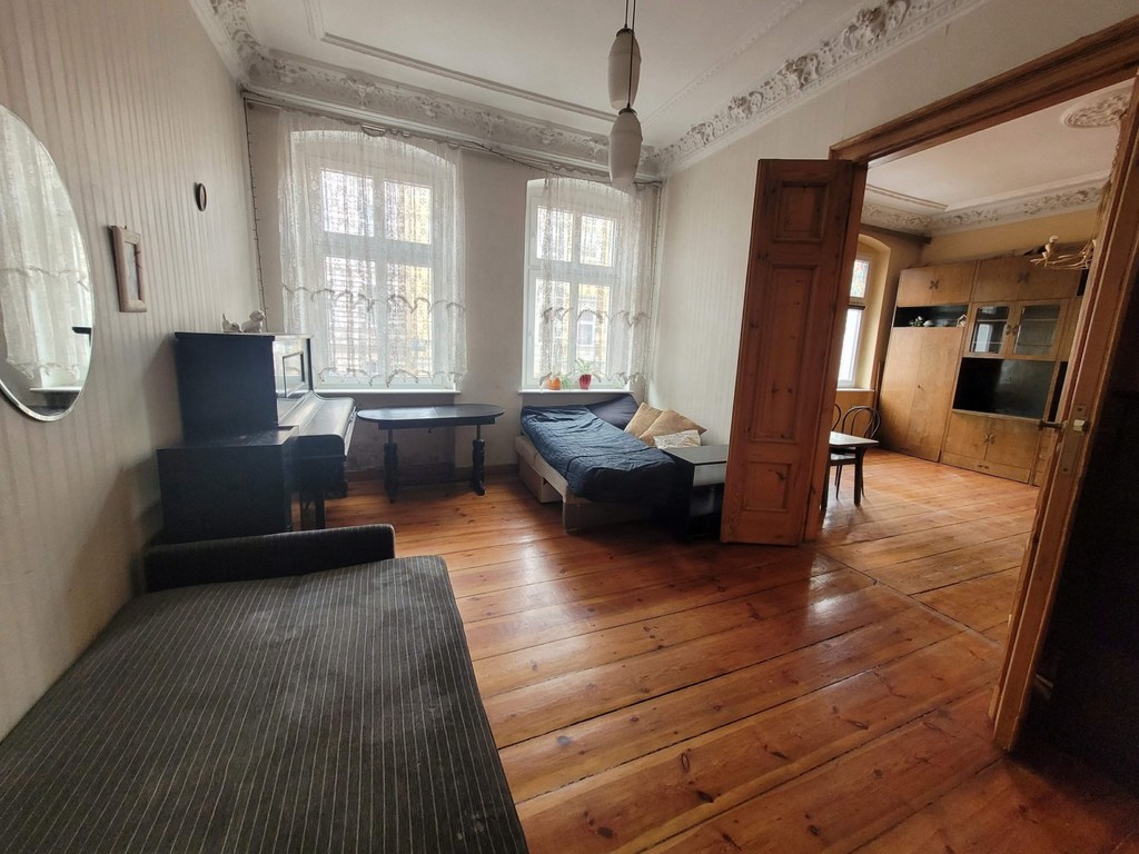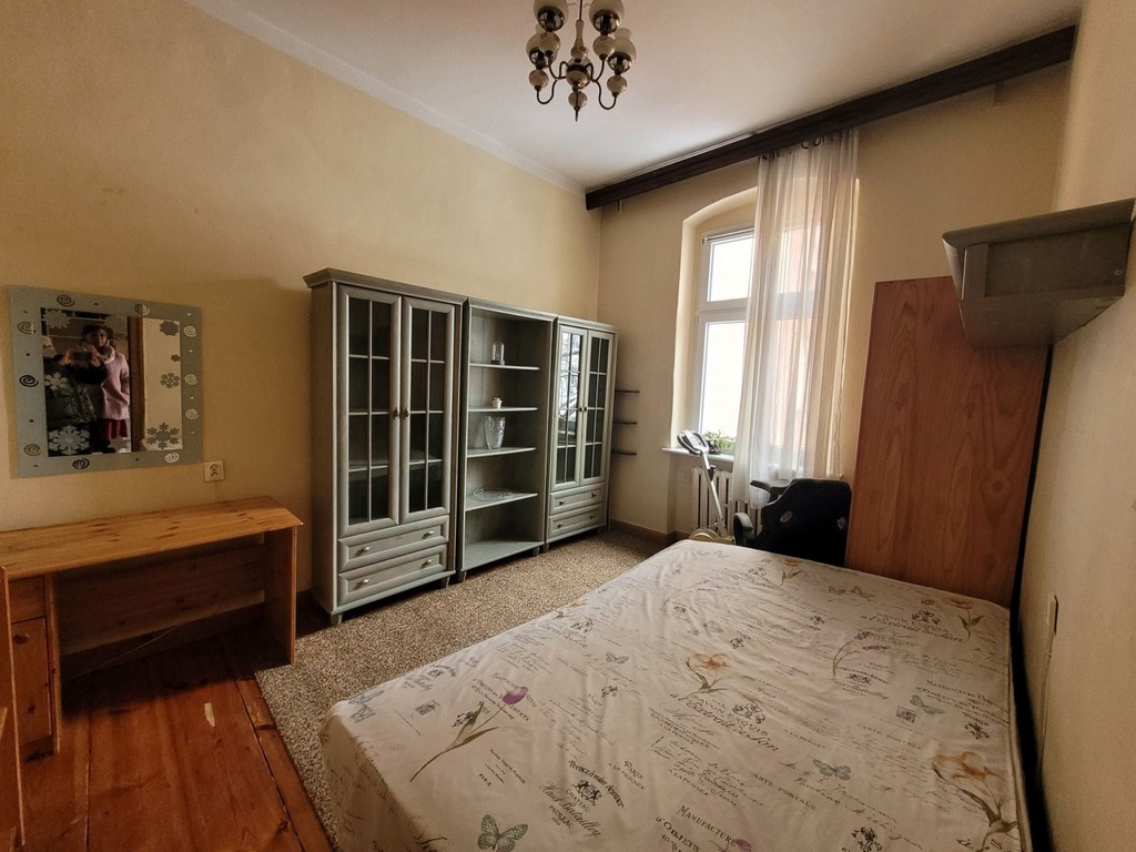 Downtown. A 4-room apartment located on the second floor of a renovated tenement house in the vicinity of pl. Consent. New entrance gate, intercom, renovated staircase. Beautifully landscaped yard with numerous plantings, benches and tables to relax. The apartment has 4 rooms with an area of 23, 19, 13, 10 m2, including the smallest with a mezzanine with a bedroom. Only one of the layout rooms has an entrance from the kitchen, which can be converted with little effort. The apartment is 3.20 m high, the original ceiling stuccos have been preserved, as well as the original wooden interior joinery and the post-German floorboard. The ceiling in the hall was lowered by 1 m, which created an attic with an area of 7 m2. On the walls, smoothed and painted plaster. Kitchen with a window of the area of 10 m2 with kitchen furniture and a dual-function gas stove for heating and hot water. Bathroom of the area 7 m2 with a bathtub finished with glazed tiles and terracotta, separate toilet. New PVC windows, rent 500 PLN/month. The apartment is partially furnished. Staircase after renovation, new gates from the street and from the yard. Tenement house after renovation, insulated with a new facade. Excellent location, the apartment can also be a law firm, offices, etc. I recommend it.
