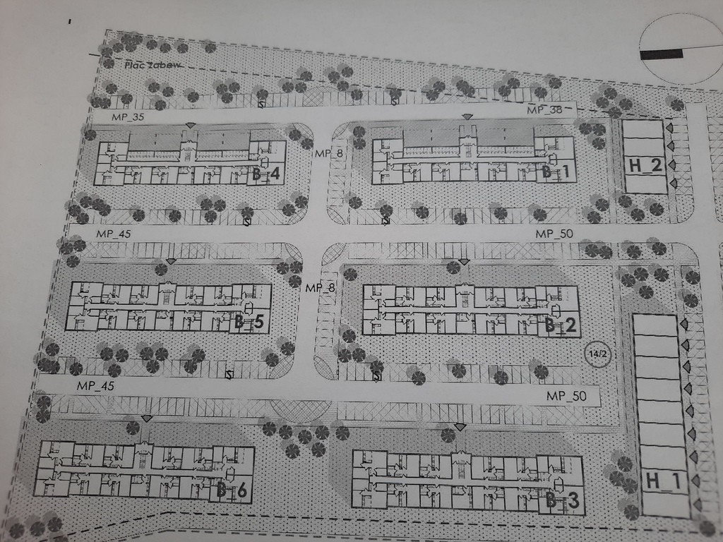Plot with an area of 3.0576 ha located in Gryfice. A development concept has been developed for the plot. PROGRAM AND SPATIAL CONCEPT: 1.1 The subject of the study is the program and spatial concept of land development. The plot in question is not covered by the spatial development plan. The analysis carried out aims to estimate the absorption capacity of the area and be the basis for an application for development conditions specifying: – the function of the designed facilities; – applicable building lines; – height of the designed development; – roof geometry; – percentage of area plot of land intended for development; – guidelines for communication services; – biologically active surface coefficient; – parking space ratio. 3. PURPOSE AND UTILITY PROGRAM. 3.1 General land use program. The plot in question is located in the north-western part of Gryfice, its area is limited by the existing buildings and infrastructure of Gryfice. In the eastern part, the plot is adjacent to the Szczecin – Kołobrzeg railway line, from the south, the plot borders the national road, and from the east, it borders a recreational area which is a place for the inhabitants of Gryfice, while on the north, there is agricultural wasteland. The plot in question was divided into two functional zones: service zone – the front part of the plot adjacent to the street from the south, creating an isolation zone from the national road and a multi-family development zone in the further part of the plot. RESIDENTIAL FUNCTION. The residential function was implemented in six multi-family buildings designed on a north-south axis ensuring convenient sunlight illumination of the rooms. Three-story, single-staircase buildings were designed. The project envisages the construction of 226 apartments of various sizes (from 30 m2 to 75 m2). SERVICE FUNCTION: The service function was designed in the southern part of the plot, directly connected to the national road, in two single-story buildings. The buildings were designed as single-story buildings with separate cubicles with social, hygiene and sanitary facilities. Each box can have a separate service function, e.g. office, grocery store, catering. The boxes can be connected to each other to create larger sales areas. Boxes were designed on a 12 m x 6 m module. Parking spaces for customers were designed directly in front of the service buildings. SUPPLEMENTARY FUNCTION: The functional program is complemented by garages, technical rooms and storage rooms. The investment area includes parking lots, places for collecting household waste, a playground and rest areas for residents. 4. Characteristic parameters. – area plots: 30,000 m2 – area residential development: 5760 m2, – area usable area of PUM apartments: 11,000 m2, – area service development: 980 m2, – area usable area of PUU services: 980 m2, – area biologically active area: 806 m2, – building height: 10 m. Due to the lack of a Local Development Plan, it is also possible to consider commercial use of the area. In the case of a determined customer, there is an option to purchase half of the land.