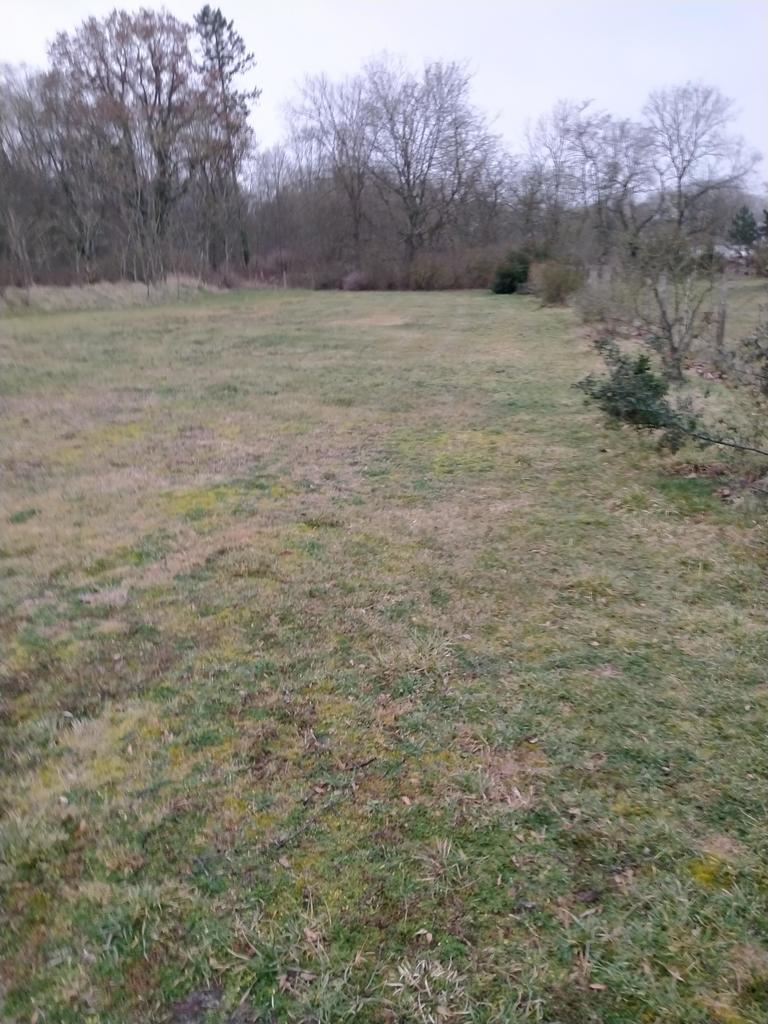 Entrance to the plot from the north, garden from the south. Flat area, partly fenced.