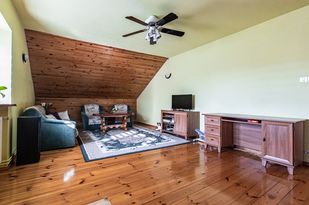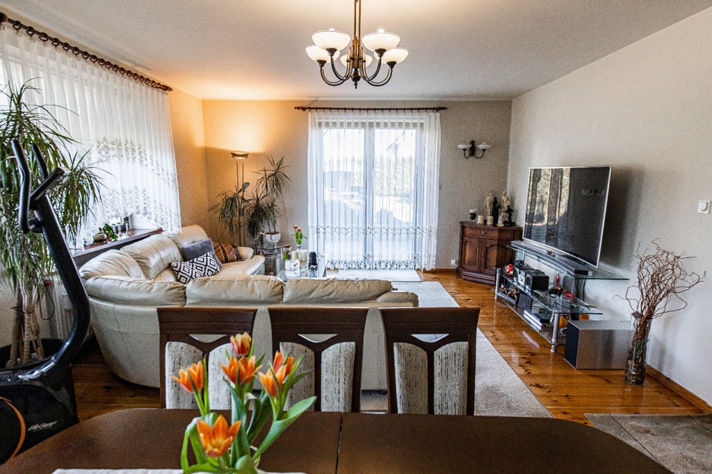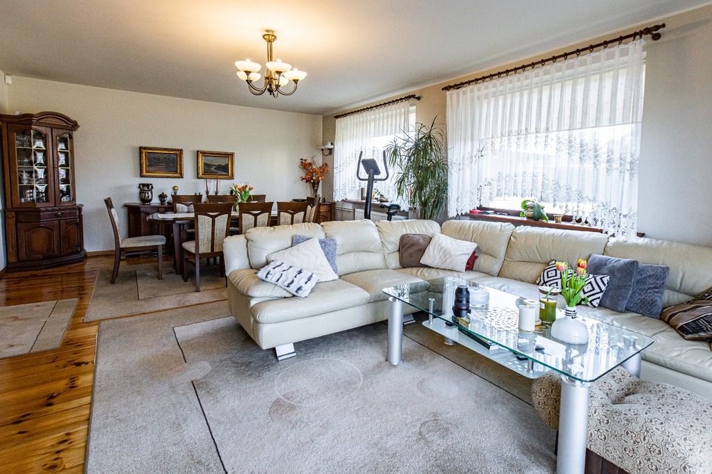 Detached house with a large plot / 987 m2 / in Pucice. Year of construction 1996. Possibility of additional use of a plot with an area of 663 m2/ plot lined with paving stones. House ready to move in – fully furnished and equipped. Ground floor: large, spacious living room with access to the garden, separate kitchen with dining room, office, spacious bedroom, large bathroom with bathtub and shower, hall with built-in wardrobes. Attic: bedroom, large guest room, bathroom with shower, large spacious hall / nice place for a library or children's play area, dressing room. The condition of the property is very good, PVC windows, marble window sills, countertops, floors depending on the room, wooden, carpeted or terracotta. Wooden, stable stairs, many built-in wardrobes. The house does not have a basement. The area is fenced, safe, developed, lots of plantings, a place to rest and relax. Garage in the building, shelter, parking spaces. Monthly cost of maintaining the property: rent PLN 6,900, fees for water, electricity, gas, garbage according to consumption. Deposit to be agreed, occasional rental preferred. READY FOR RENT!!! I cordially invite you to the presentation, online presentation possible.