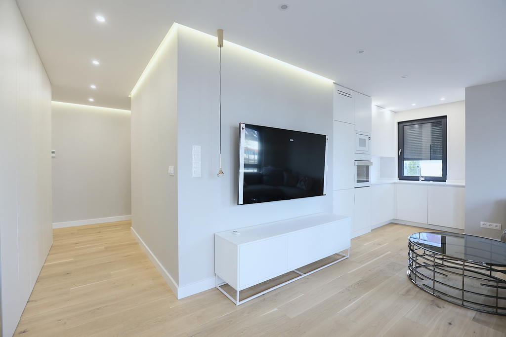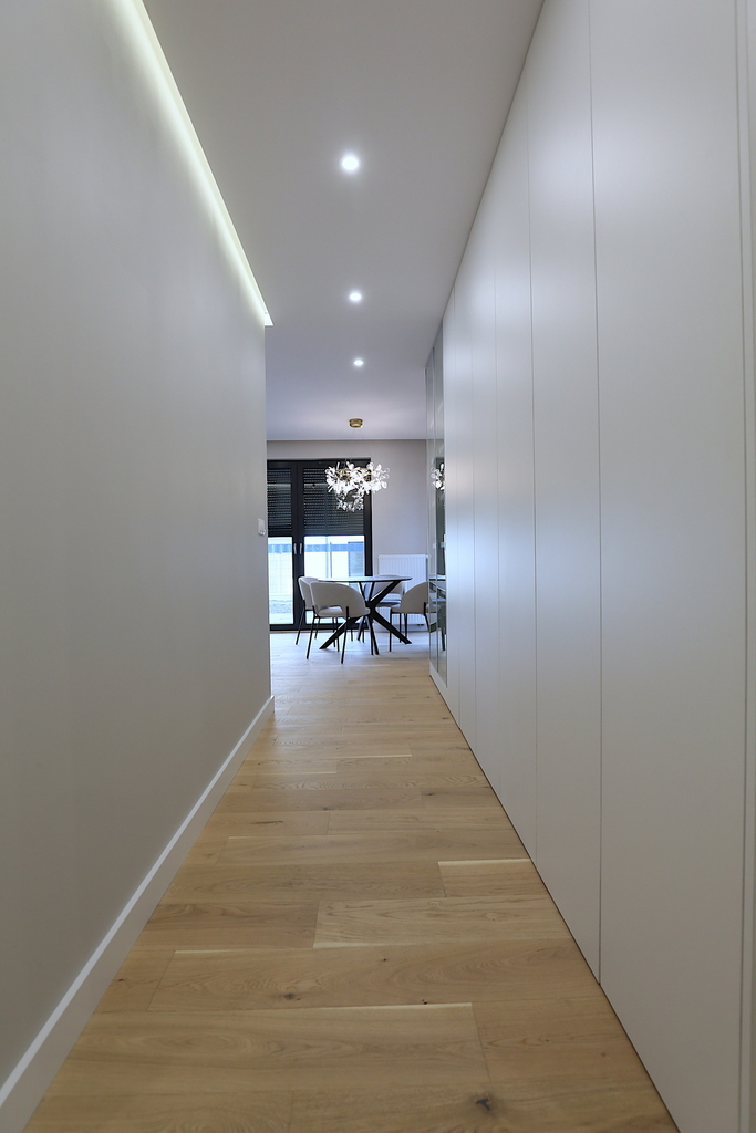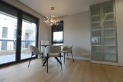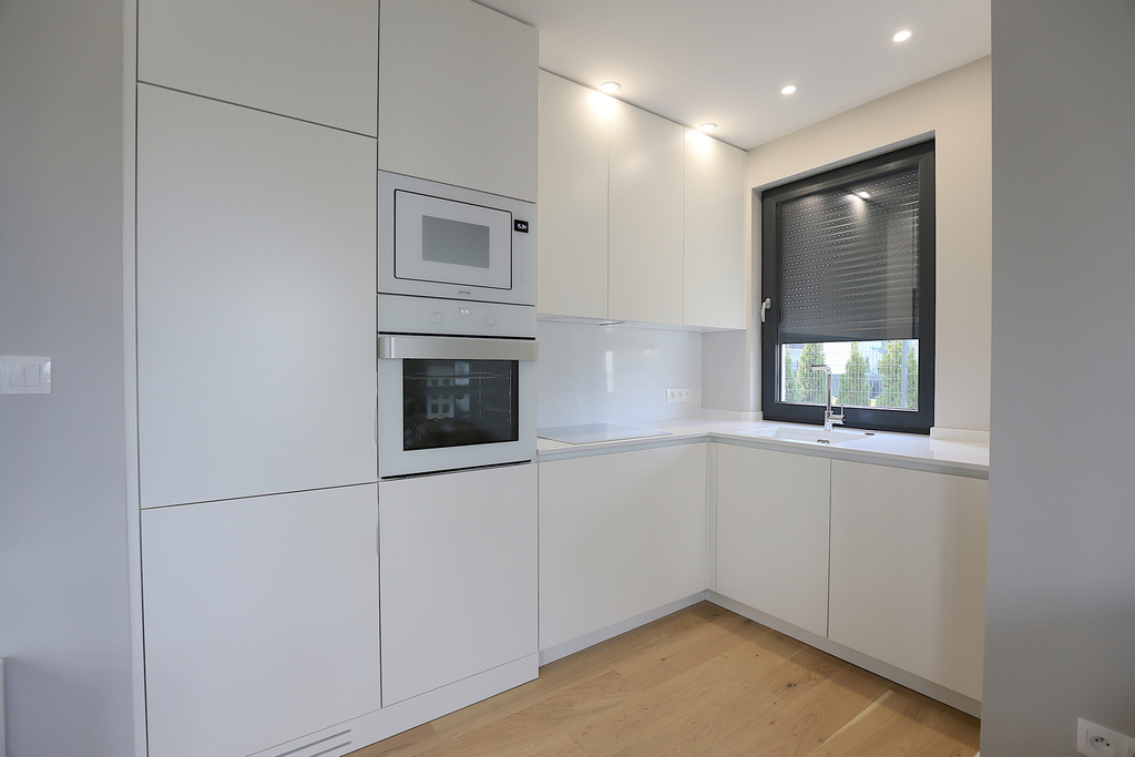 We offer for sale a three-room apartment with an area of 60 m2 on the axis. Galaktyka in the Warszewo district. The apartment is located on the ground floor with a garden with an area of 140 m2 with an east-west exposure with a view of Lake Dąbie. The apartment consists of a living room with a kitchenette with access to the garden, a bedroom, a room, a bathroom and a spacious hall. Finished to a very high standard, triple-glazed windows with electric roller shutters with one remote control, Pol-Skone non-rebated internal doors with magnetic locks, anti-burglary external doors, wooden floors laid on quartz sleepers, lowered ceilings with hidden Paulmann LED lighting, double soundproofed bedroom. Built-in VIP kitchen with matte fronts and Technistone stone worktop, Franke faucet and sink, kitchen equipment: Gorenje oven, separate Gorenje microwave, Samsung built-in fridge with separate freezer, Siemens dishwasher, Siemens induction hob and built-in absorber Siemens. In the living room, a wide TV cabinet, a large 65-inch TV and a soundbar, a large and comfortable Befame rest, a round Kler coffee table, a round table with 4 chairs. Bathroom with unique Tubądzin Maciej Zień ceramic tiles with an insulated bathtub with Grohe fittings and Grohe faucets, built-in capacious wardrobe with a Samsung washer and dryer and a place for chemicals, an illuminated mirror above the sink. A large bedroom overlooking the garden with a capacious built-in wardrobe, a large double bed with a size of 1800 x 2100 and two cabinets, a smaller unfurnished room. In the spacious hall there are illuminated built-in wardrobes and a glass display case, also illuminated. The whole apartment is kept in neutral and pleasant colors with top Flugger paints. Garage in the underground hall under the building with an area of about 19 m2. The premises is fully furnished and equipped with a garage for PLN 849,000.