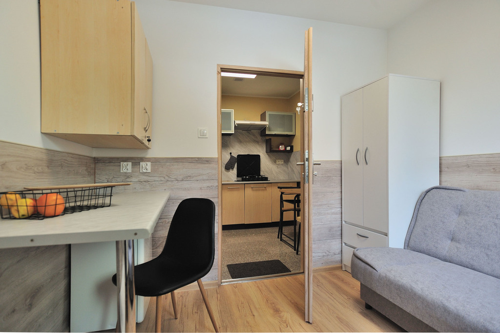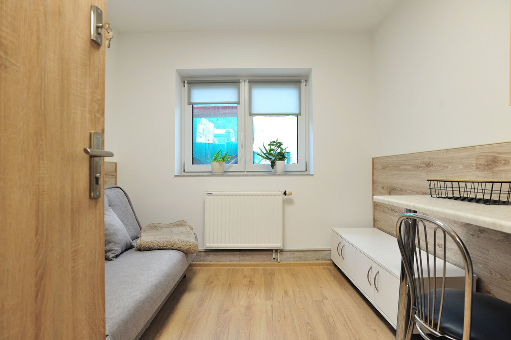 A room for one person or a couple to rent from today. The room has a fold-out sofa, an oblong cupboard, a wardrobe, a hanging cupboard, and a table with a small fridge under it. The tenants have at their disposal a bathroom with a toilet and a shower, as well as a toilet with a sink. The kitchen is fully furnished and equipped with an electric kettle and a gas cooker. The rent for a room is PLN 950 per person, in the case of a couple – PLN 1,100. Additional fees: PLN 300 advance payment for utilities plus electricity fee according to consumption. The apartment has 3 independent rooms. It is located on the ground floor of a 1-story residential and office building located at ul. Rugiańska on the estate. Drzetowo. There are bus stops nearby. Deposit: 1 month's rent with the possibility of spreading it into two installments. Feel free to contact me by phone from Monday to Friday from 9 a.m. to 4 p.m. (on other days and hours, please contact me via SMS).