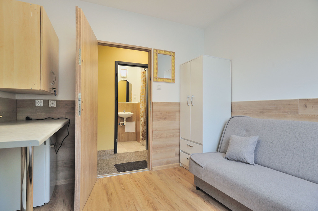 A room for one person or a couple to rent from today. The room has a fold-out sofa, an oblong cabinet, a mirror, a wardrobe, a hanging cabinet, and a table with a small fridge under it. The tenants have at their disposal a bathroom with a toilet and a shower, as well as a toilet with a sink. The kitchen is fully furnished and equipped with an electric kettle and a gas cooker. The rent for a room is PLN 950 per person, in the case of a couple – PLN 1,100. Additional fees: PLN 300 advance payment for utilities plus electricity fee according to consumption. The apartment has 3 independent rooms. It is located on the ground floor of a 1-story residential and office building located at ul. Rugiańska on the estate. Drzetowo. There are bus stops nearby. Deposit: 1 month's rent with the possibility of spreading it into two installments. Feel free to contact me by phone from Monday to Friday from 9 a.m. to 4 p.m. (on other days and hours, please contact me via SMS).
