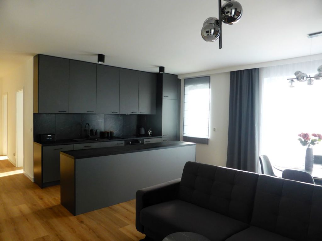 An apartment for rent, located on the 2nd floor of a 3-story block with an elevator. On an area of about 35 m2, there is a bedroom and a living room with a kitchenette with access to a large balcony. The apartment has been arranged and finished to a high standard and with attention to detail. Built-in furniture fully equipped with household appliances and an atmospheric fireplace. The rent is about PLN 300, electricity and SEC (heating) are additionally payable. Additionally, it is possible to rent a parking space in the underground garage for PLN 400 and a storage room for PLN 150. I recommend and invite you to the presentation.