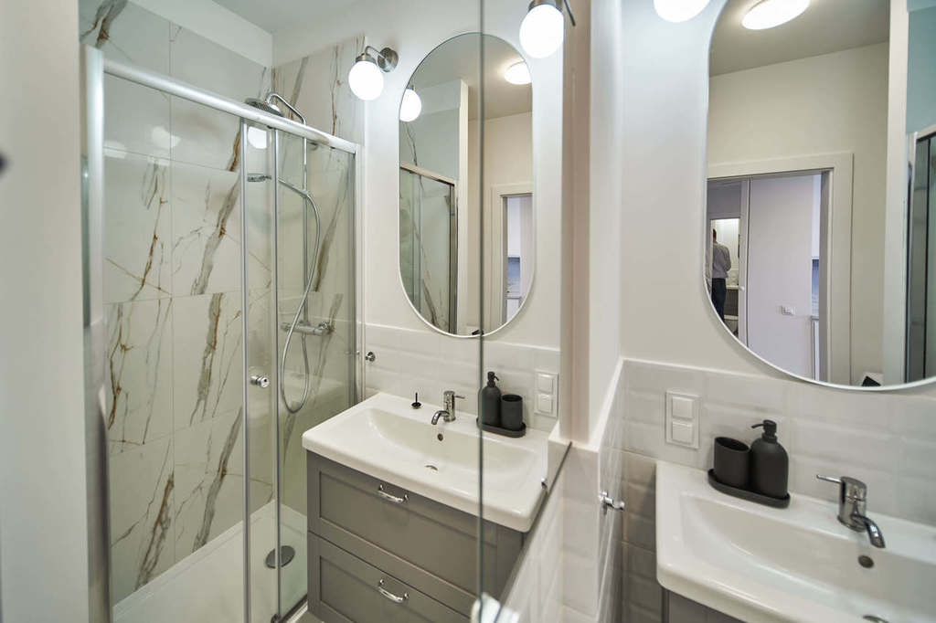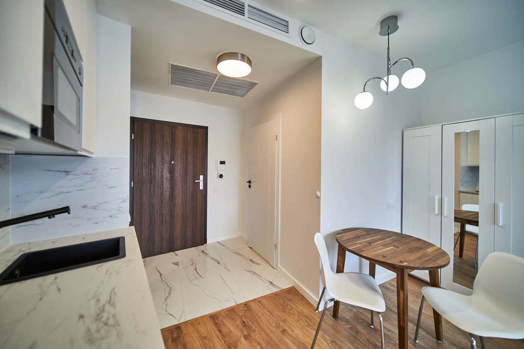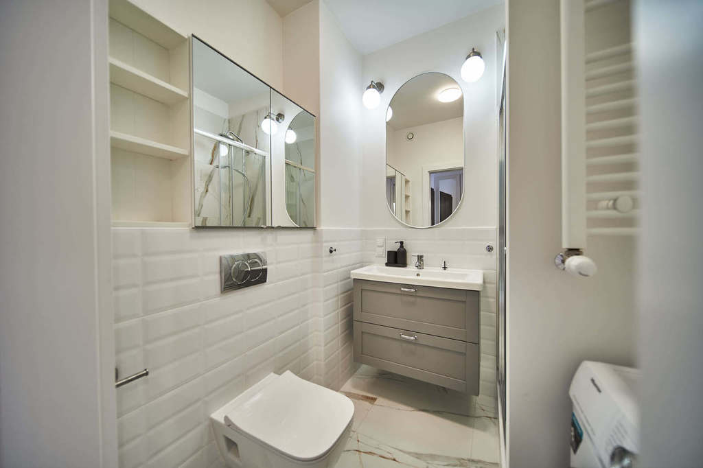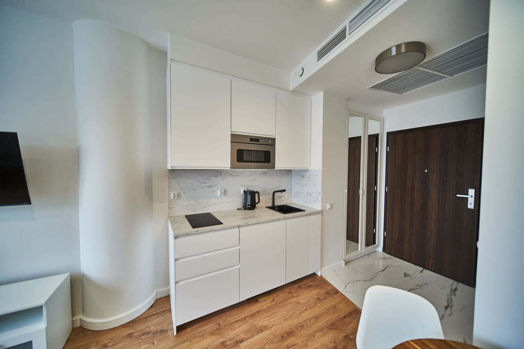 The apartment is equipped with household appliances (washer / dryer, fridge, dishwasher, hood, induction hob, sink). Cutlery, plates, pots, pans, bedding are provided in the apartment.