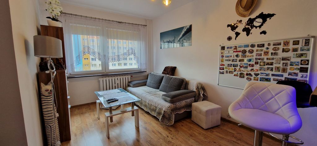For sale a very nice 2-room apartment with an area of 35.6 m2 on Łuczninicza Street. The apartment is located on the sixth floor of a well-maintained skyscraper from 1982. The 35.6 m2 consists of: – a large living room with a kitchenette, – a bedroom, – a separate toilet, – a separate shower, – a hall with buildings. The apartment is very warm (central, south-western exposure) and well-maintained, sold fully furnished. Heating and hot water from the municipal network. The rent with all fees for one person is PLN 380 per month. The apartment includes an auxiliary room (approx. 10 m2) and a small cellar. I recommend because of the location and technical condition of the apartment.