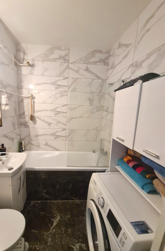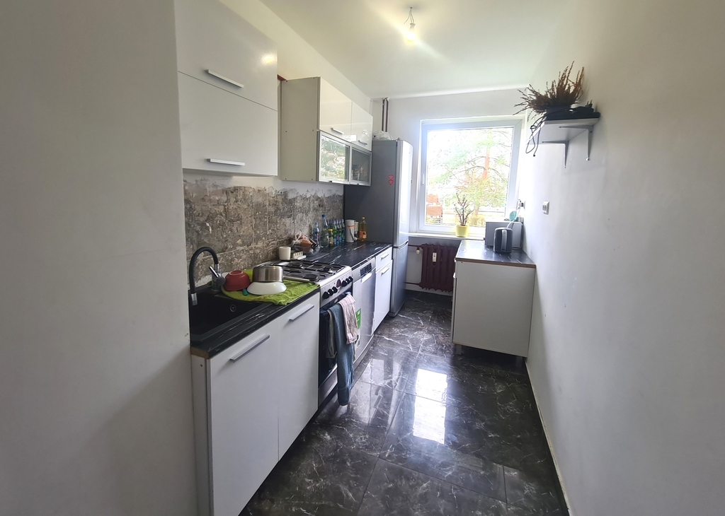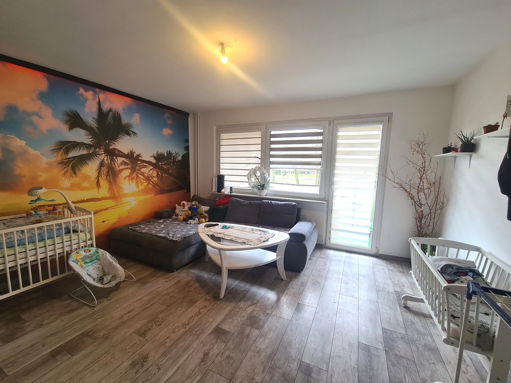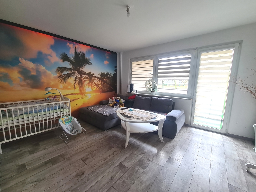 A nice apartment with an area of 47.54 m2 on the ground floor in a four-story block in Police. It consists of two adjustable rooms, a kitchen, a bathroom with a toilet and a corridor. From the larger room exit to the balcony. PVC windows, panels on the floor in the rooms, tiles in the kitchen and bathroom. Central heating, rent PLN 900. Bathroom with bathtub and glass shower enclosure. The standard of the apartment – walls to refresh, doors and frames to be replaced. The price includes furniture, kitchen furniture, fridge, stove and washing machine. Parking spaces in front of the building. A nice apartment for an investment for rent – with the possibility of extending the contract with the current landlord. I invite you to the presentation.
