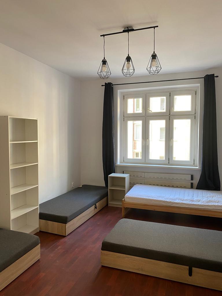 For rent a 3-room apartment with an area of 78 m2. The property consists of 3 separate rooms, kitchen, bathroom, corridor, balcony. Electric heating, gas cooker. The rent is PLN 3,300 net, administrative rent: PLN 641 + electricity (the bill for 2 months is PLN 670 for 8 people). Nearby public transport, shop. Quiet neighborhood.