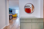 The apartment is located on the ground floor of the building, which is equipped with an elevator with access to the underground multi-car garage.
