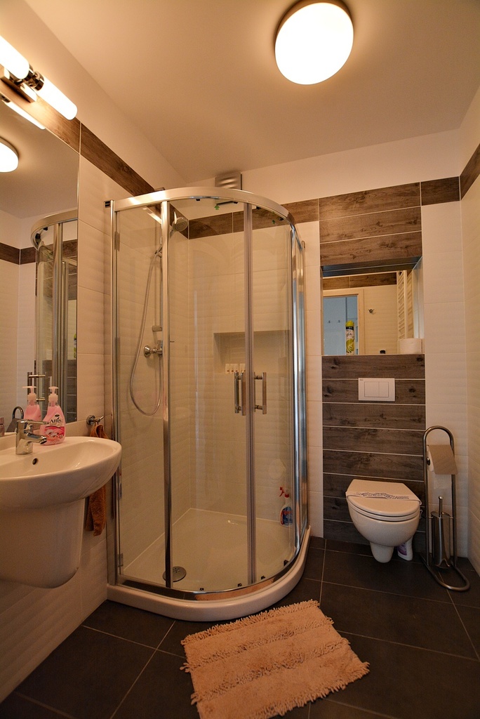living room with kitchenette, bedroom, bathroom with shower and toilet, and hall.