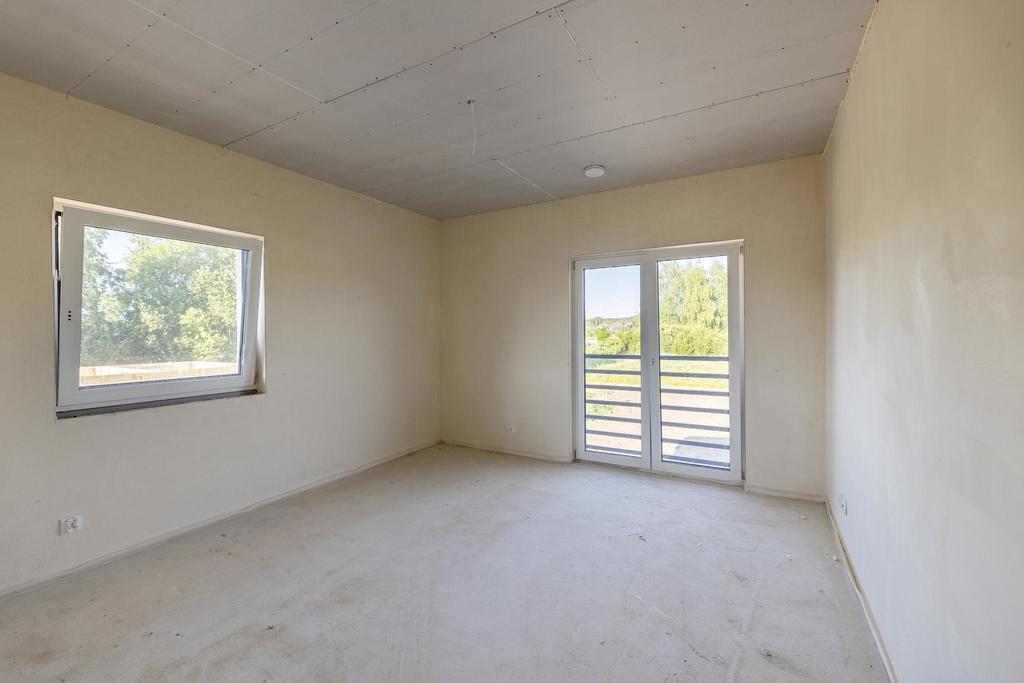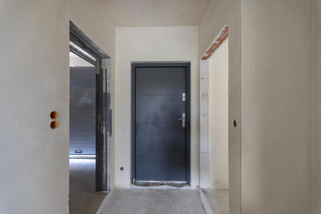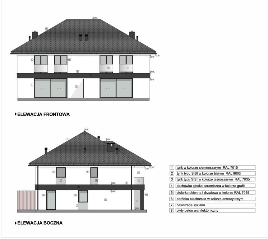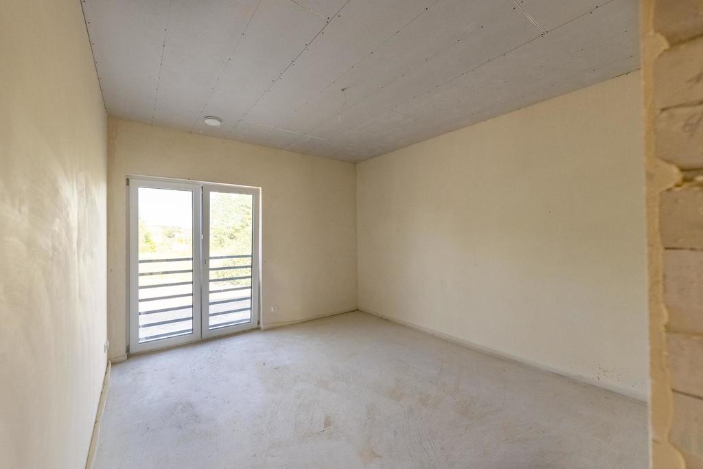 A spacious semi-detached house available for sale in Dobra at ul. Tulipowa. Design intentions will satisfy the tastes of a conscious customer who will appreciate, among others, no slants on the second floor, additional space in the attic, the size of the plot (500 m2), and thus the optimal area of the garden, no neighborhood opposite the garden. The location allows for a comfortable organization of both professional and after-work life. Dobra is a fully urbanized commune village with the seat of the authorities, numerous shops, a kindergarten, a primary school, a clinic and service outlets. Located less than 7 km west of Szczecin and 5 km from the border crossing in Lubieszyn. The nearest neighborhood is single-family housing and green areas. The atmosphere of a quiet estate of single-family houses is maintained here. The house is set on a flat plot of regular shape, on a foundation slab with an additional drainage band around the building. On the surface of just over 150 m2 there are: GROUND FLOOR – living room with open kitchen (43.55), bathroom (2.93), under. economic (5.75), vestibule (4.89) FLOOR – 4 rooms (15.12/14.82/13.67/11.26), bathroom (6.58), wardrobe (2.73) Single garage in the body of the building with a segmented, anthracite remote controlled entrance gate. The standard of the external finish of the building is: insulation – 20 cm graphite polystyrene, silicone-silicate facade plaster, PVC gutters and downspouts, anthracite steel window sills, balcony balustrade, ceramic tiles. The whole is kept in shades of white and gray. In front of the building, an additional parking space and access to the building paved with cubes, the fence of the garden is made of mesh panels on steel posts. The area around the building was leveled and cleaned after the construction process. The following installations have been made to the property: – WOD-KAN with an approach to utilities, – electric with wiring with accessories (sockets + switches), three-phase main power supply with switchgear, lighting points without accessories and prepared passages for photovoltaics – central heating, i.e. a gas stove with a hot water tank (Vailant), underfloor heating throughout the house – Internet and TV installation, i.e. cabling without accessories brought to the living room + rooms on the first floor – recuperation (mechanical ventilation + gravity ventilation in the garage. Inside the building, gypsum plasters were made, floors made of anhydrite screed, triple-glazed PVC windows and balcony doors, moreover, a window in the HST system in the living room, external doors with two locks, roof insulation with PUR foam, thickness 20 cm. The buyer does not pay the PCC tax. Detailed construction, finishing or design information is available in the office or at the presentation.