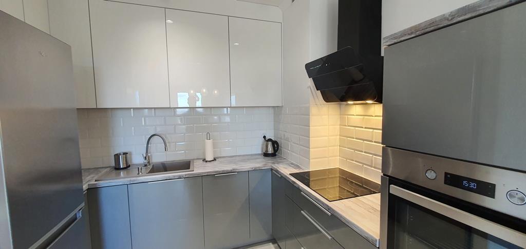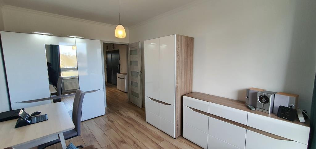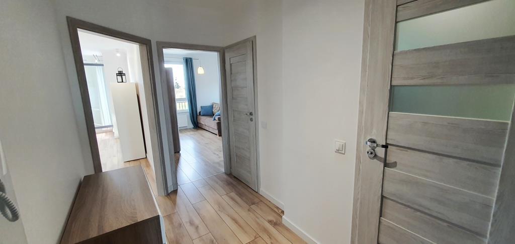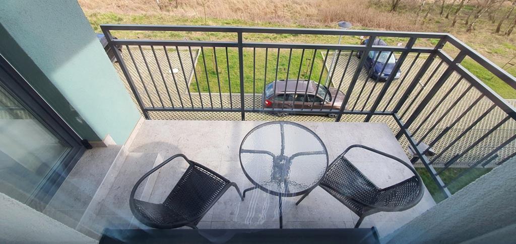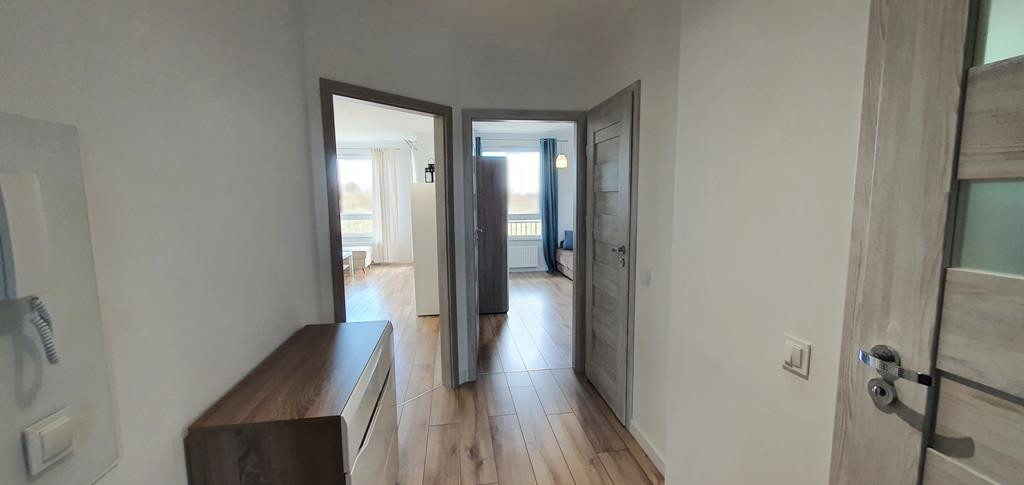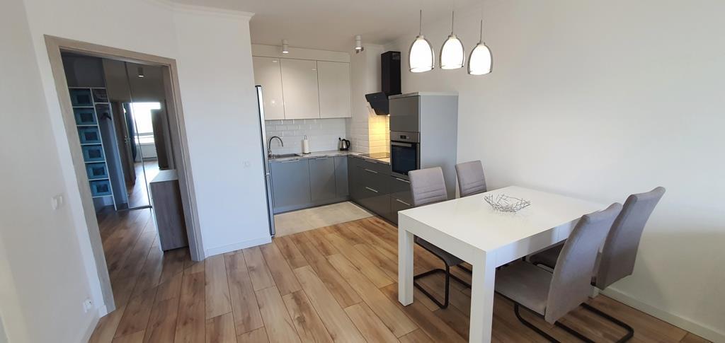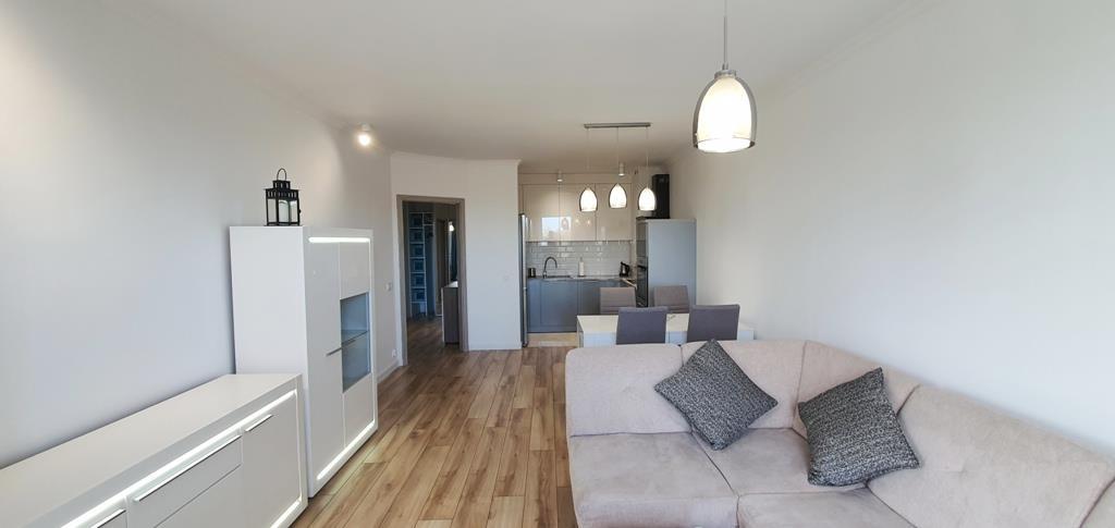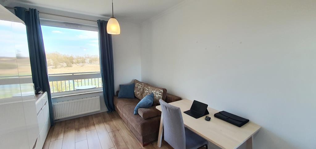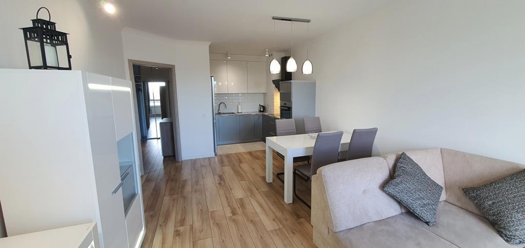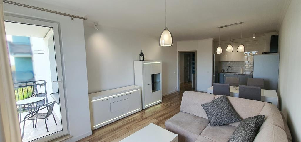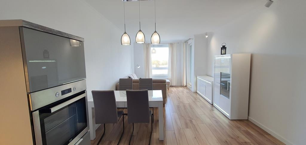 For rent an apartment located on the first floor of a low apartment building in a new housing estate in Warszewo with a parking space under the building. The area of 53 m2 consists of – a room with a kitchenette (27 m2), a room – bedroom (13 m2), bathroom (4 m2) and a corridor (10 m2). In the living room (with kitchenette) there is a dining table, corner sofa, furniture. From the living room exit to a large balcony (4.5 m2). In the smaller room there is a fold-out sofa, desk, furniture (including a wardrobe, chest of drawers). Kitchenette equipped with furniture and built-in household appliances (induction hob, electric oven, dishwasher, fridge with freezer, microwave, hood). Tiles between the countertop and the hanging cabinets on the wall. Bathroom with toilet in modern, very nice tiles and terracotta, with a large shower cabin. Smooth and painted walls and ceilings, high-quality panels on the floors. In the hallway there is a built-in wardrobe, panels on the floor. Nice doors to the rooms. Heating and hot water from the city. The fee for the Manager is PLN 540 (includes, among others, advance payments for: garbage collection, hot and cold water and heating). Additionally paid electricity. The apartment is very warm, comfortable and bright. Renting a parking space in the underground garage (remote control gate) for an additional fee of PLN 400. A large number of public parking spaces in front of the building. A deposit of PLN 3,000 and an occasional lease agreement are required (there are exceptions, e.g. renting to a company). Nearby there are bus stops and numerous shops (Biedronka, Żabka), a National Health Fund clinic, an animal clinic, etc.