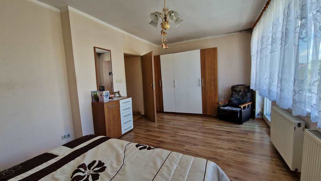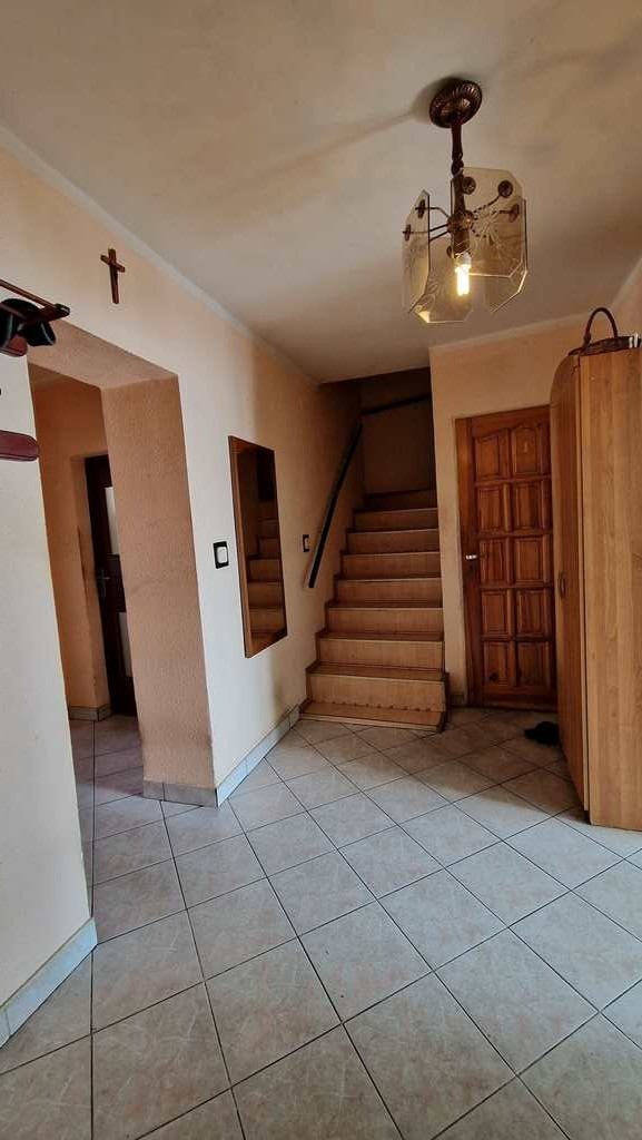 Szczecin-Bukowo. A semi-detached house with a total area of 220 m2 (usable area of 180 m2). Property to be renovated. A building from the 1980s, located on a plot of 589 m2, consisting of four floors. Ground floor: hall, living room, office, separate kitchen, toilet. First floor: three bedrooms, bathroom. Attic: open space (sloping) with a large dormer window. Basement: single garage, three utility rooms. Available utilities: gas, electricity, water and municipal sewage. I invite you to the presentation.