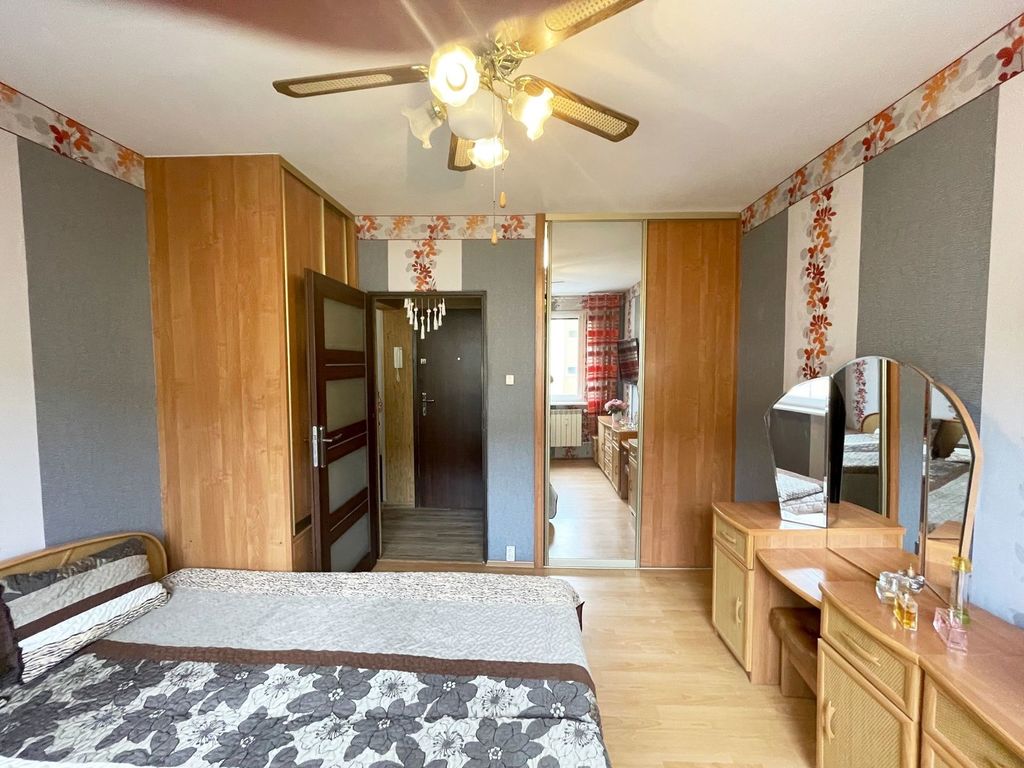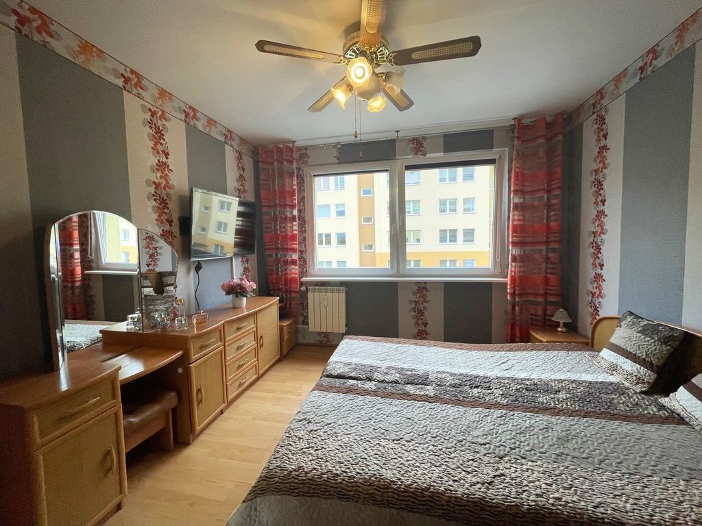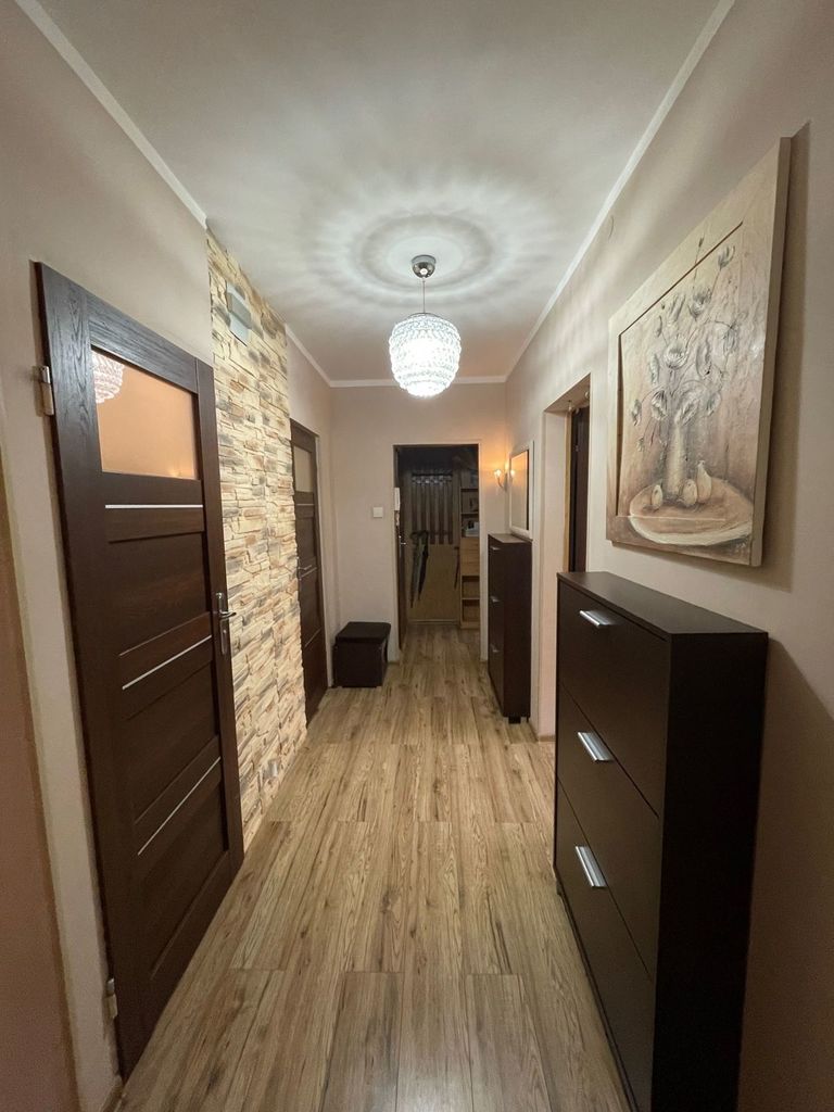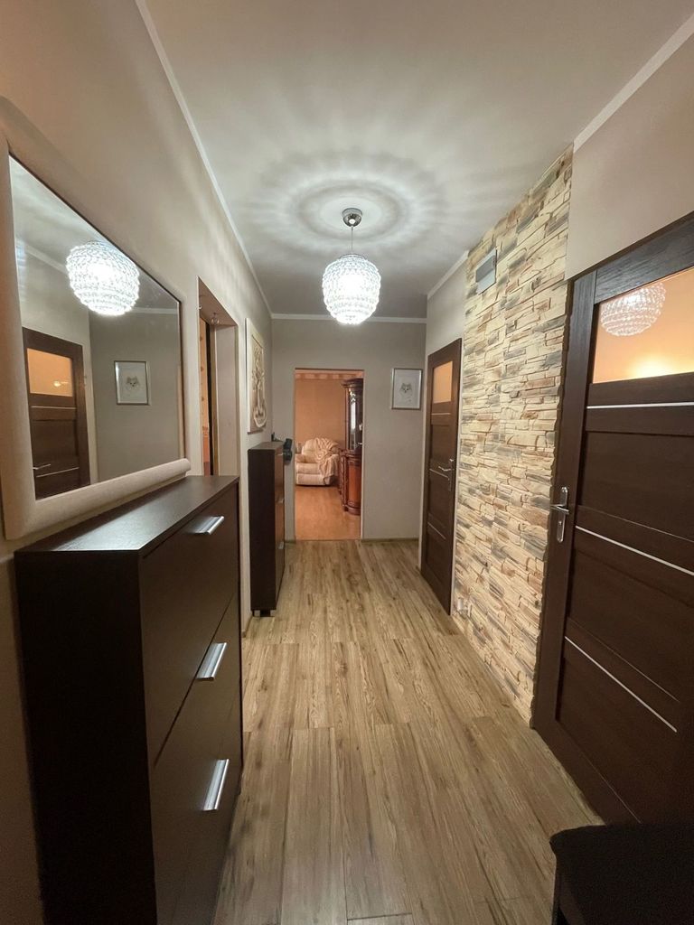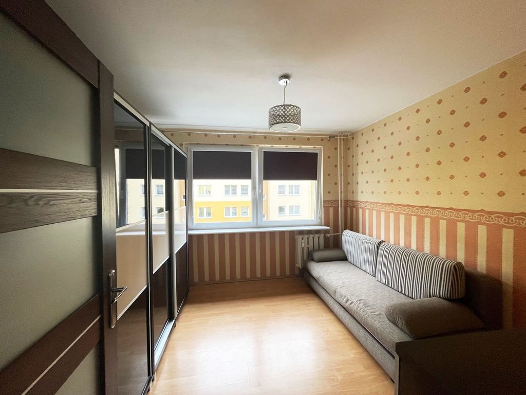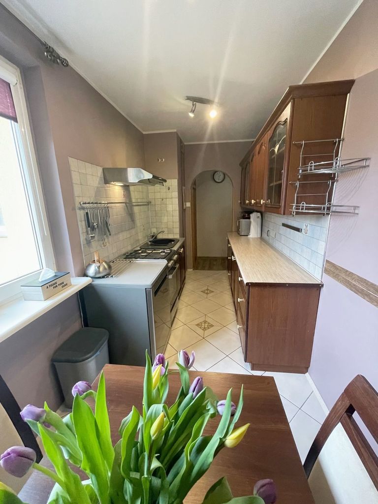 A very nice, spacious, sunny and well-planned apartment, located on the 2nd floor of an insulated 4-story building. The apartment consists of 3 rooms (20m2, 12m2 and 14 m2), kitchen, bathroom, toilet and hall (the largest room with a balcony). The rooms have panels on the floor, the walls in the rooms are wallpapered. Kitchen with built-in furniture with household appliances (electric oven, gas hob), terracotta on the floor, walls smoothed and a strip of glaze painted on one wall. Bathroom and toilet separately finished with glazed tiles and terracotta, in the bathroom there is a shower cabin with a bathtub. In the hall, the floor panels, one wall lined with decorative plaster blocks. Built-in wardrobes in 2 rooms. PVC windows throughout the apartment. The apartment is very sunny and warm. Rent 630 PLN/month for 1 person. Nearby numerous shops, primary school, kindergarten, playgrounds. The price of the apartment includes kitchen furniture with household appliances, wardrobes in the rooms and some furniture. I invite you to the presentation.