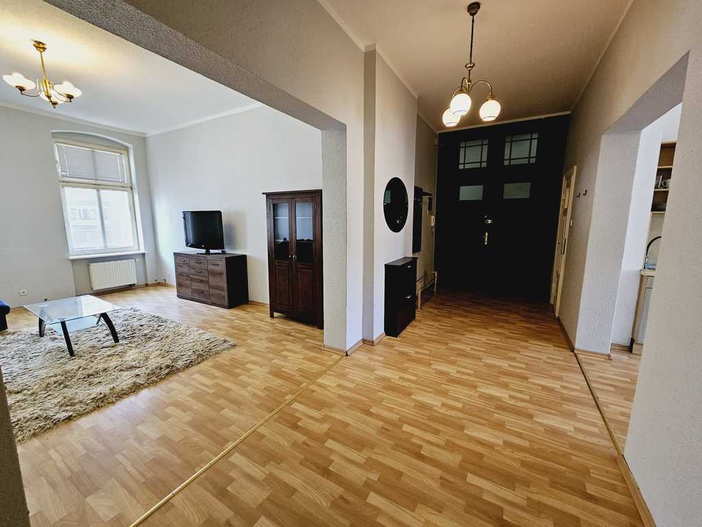 The apartment with an area of 114m2 is located in the very center of the city, in a renovated tenement house with video surveillance at the Bogusława promenade. Southwest window display. The windows of two rooms overlook the renovated Wojska Polskiego Street. The living room is open connected to the hall, from the room we enter one of the bedrooms. Fully equipped kitchen: fridge with freezer, gas cooker, oven, extractor hood, dishwasher and microwave. The apartment has 2 bathrooms, tastefully tiled, one with a bathtub, the other with a shower, both have a toilet and a washing machine. The rooms with an area of approx. 24, 23 and 22 m2 have panels on the floor. Furnished rooms. Rent to the Housing Community in the amount of PLN 550 (including advance payments for water, heating and hot water). District heating from own boiler room. Internet Orange – fiber optics. The apartment is ideal for a quiet business / company due to its location in the city center and the surroundings of other companies, or for a family, for investment purposes for rent. Immediate release date. Price is negotiable.