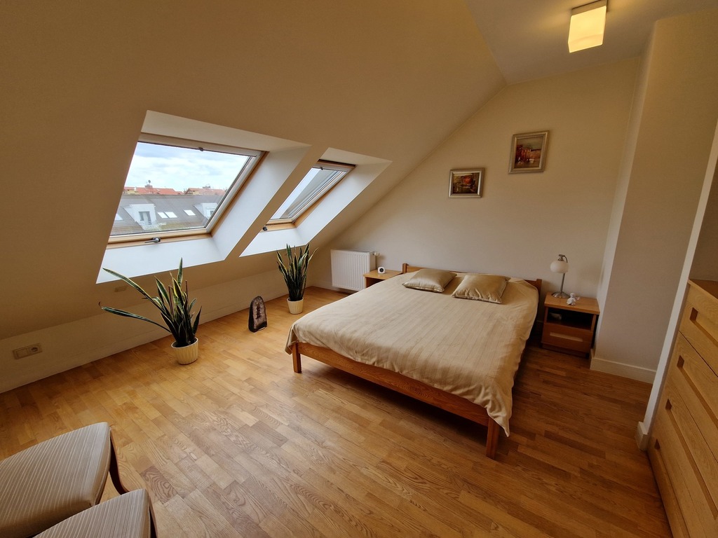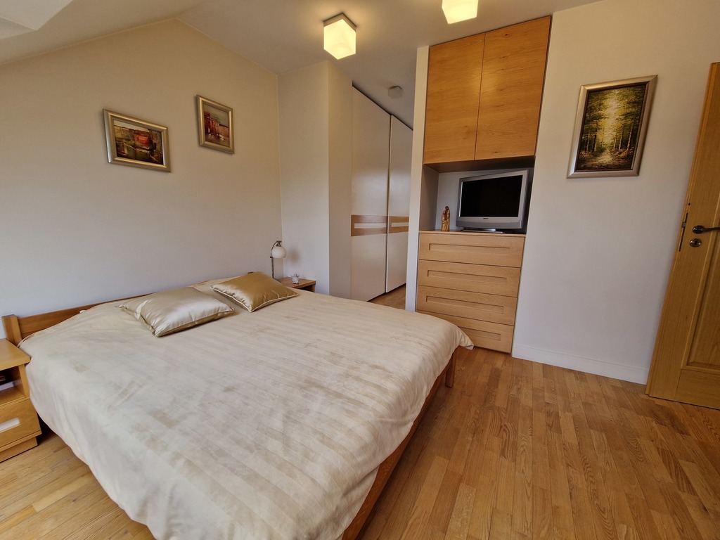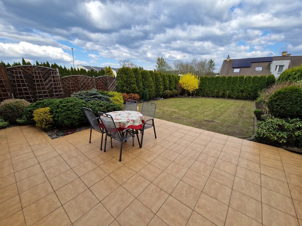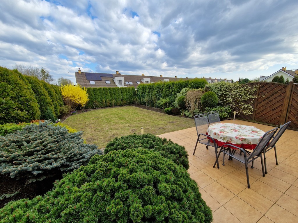 A terraced house for sale, located in the Bukowo district in Szczecin, in a closed estate of houses built in 2007. The building was built using the traditional method of brick and, importantly, with terraced houses, additional insulation of 30 cm of polystyrene was used between the buildings. The house has a total area of 119.34 m2 and the usable area without the garage is 104.08 m2. The standard of finish, despite the passage of more than a decade, is enviable because it was made of very high quality materials and is also very well maintained and requires almost no expenditure. Ground floor: On the ground floor we enter the house through a glazed vestibule and then into a small corridor with built-in wardrobes to size, then on the right we have the first bathroom in a modern style with a shower and toilet with an area of 3.3m2. On the left we have the entrance to the garage for 1 car with an area of approx. 15.5 m2 with automatic gate. (additionally, one car can be parked in the driveway). Further along the corridor we go to a spacious living room of about 30m2 with a fireplace, a separate dining room and access to the terrace. On the floor in the living room varnished parquet in very good condition. The stairs leading to the first floor are wooden and look very nice thanks to numerous light points. On the ground floor from the living room there is an entrance to the kitchen 10.3 m2. Kitchen with a window on the tile floor, well-kept custom-made buildings with a stone countertop + full equipment (fridge, dishwasher, electric hob, oven and microwave in the building). Electric blinds are installed on the entire ground floor. The terrace of approx. 21m2 on the east-south side, the well-kept garden with numerous plantings and a grown hedge is an ideal place to rest and enjoy the greenery. From the garden, there is an entrance to a small storage for tools or mowers in the body of the building. Irrigation and fully automatic sprinklers for watering have been installed. On the first floor there are 3 bedrooms with an area of 20m2, 9m2 and 9m2. Adjustable rooms. One has a balcony and the largest bedroom has a separate dressing room with large wardrobes to size. Oiled wooden parquet on the floors. There is also a bathroom on this level. 6m2 with a bathtub, washbasin, toilet, shower, built-in space for a washing machine and a gas stove. The bathroom has a window and is also very well maintained and made of high quality materials. The house has gas heating from a Saunier Duval combi stove, water and sewage system from the municipal network. Virtually all furniture and most of the equipment (except for the washing machine and TV) can remain in the price. To sum up, a beautiful, well-kept house that requires almost no investment, finished with high-quality materials. We recommend and invite you to the presentation.