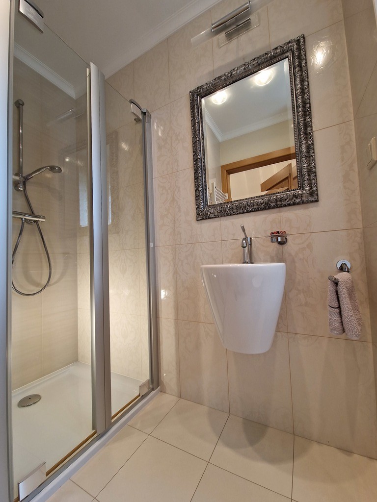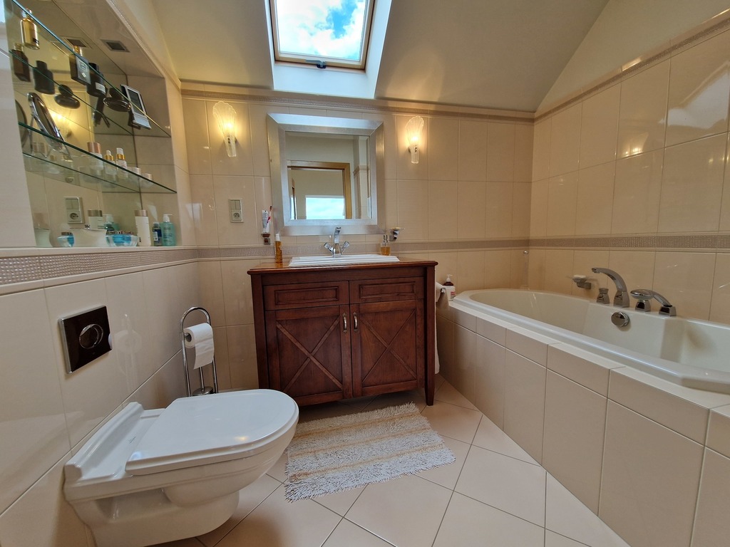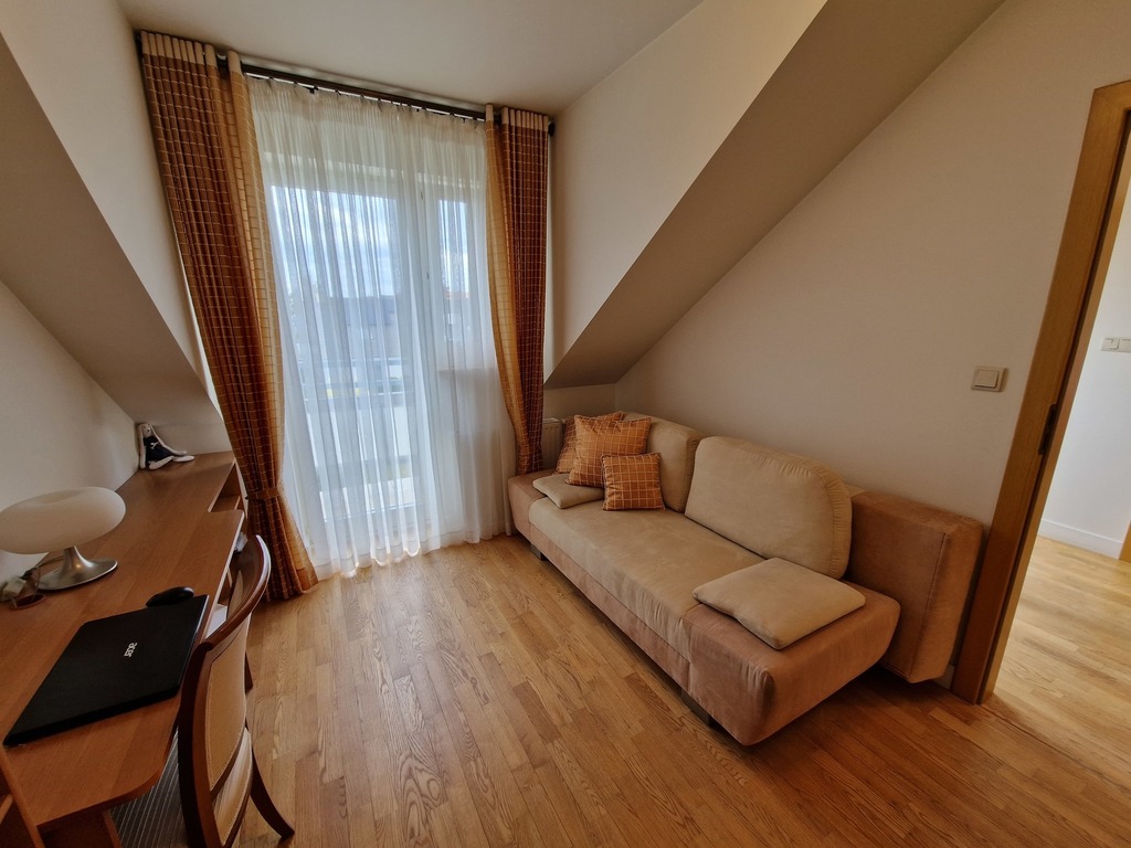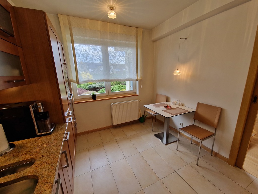 A terraced house for sale, located in the Bukowo district in Szczecin, in a closed estate of houses built in 2007. The building was built using the traditional method of brick and, importantly, with terraced houses, additional insulation of 30 cm of polystyrene was used between the buildings. The house has a total area of 119.34 m2 and the usable area without the garage is 104.08 m2. The standard of finish, despite the passage of more than a decade, is enviable because it was made of very high quality materials and is also very well maintained and requires almost no expenditure. Ground floor: On the ground floor we enter the house through a glazed vestibule and then into a small corridor with built-in wardrobes to size, then on the right we have the first bathroom in a modern style with a shower and toilet with an area of 3.3m2. On the left we have the entrance to the garage for 1 car with an area of approx. 15.5 m2 with automatic gate. (additionally, one car can be parked in the driveway). Further along the corridor we go to a spacious living room of about 30m2 with a fireplace, a separate dining room and access to the terrace. On the floor in the living room varnished parquet in very good condition. The stairs leading to the first floor are wooden and look very nice thanks to numerous light points. On the ground floor from the living room there is an entrance to the kitchen 10.3 m2. Kitchen with a window on the tile floor, well-kept custom-made buildings with a stone countertop + full equipment (fridge, dishwasher, electric hob, oven and microwave in the building). Electric blinds are installed on the entire ground floor. The terrace of approx. 21m2 on the east-south side, the well-kept garden with numerous plantings and a grown hedge is an ideal place to rest and enjoy the greenery. From the garden, there is an entrance to a small storage for tools or mowers in the body of the building. Irrigation and fully automatic sprinklers for watering have been installed. On the first floor there are 3 bedrooms with an area of 20m2, 9m2 and 9m2. Adjustable rooms. One has a balcony and the largest bedroom has a separate dressing room with large wardrobes to size. Oiled wooden parquet on the floors. There is also a bathroom on this level. 6m2 with a bathtub, washbasin, toilet, shower, built-in space for a washing machine and a gas stove. The bathroom has a window and is also very well maintained and made of high quality materials. The house has gas heating from a Saunier Duval combi stove, water and sewage system from the municipal network. Virtually all furniture and most of the equipment (except for the washing machine and TV) can remain in the price. To sum up, a beautiful, well-kept house that requires almost no investment, finished with high-quality materials. We recommend and invite you to the presentation.