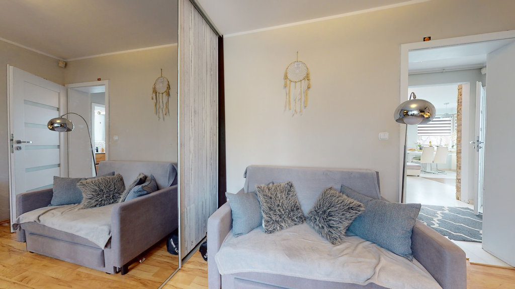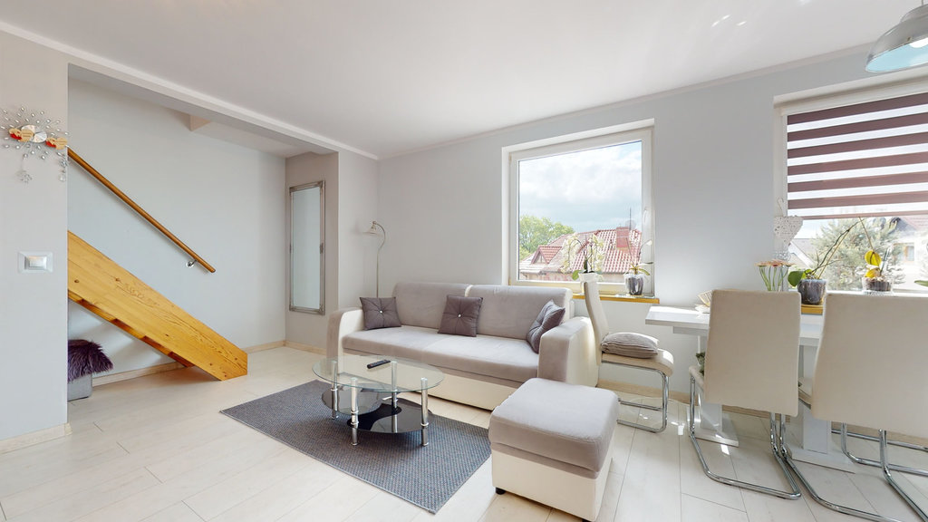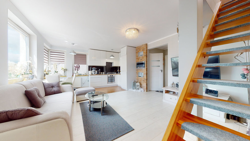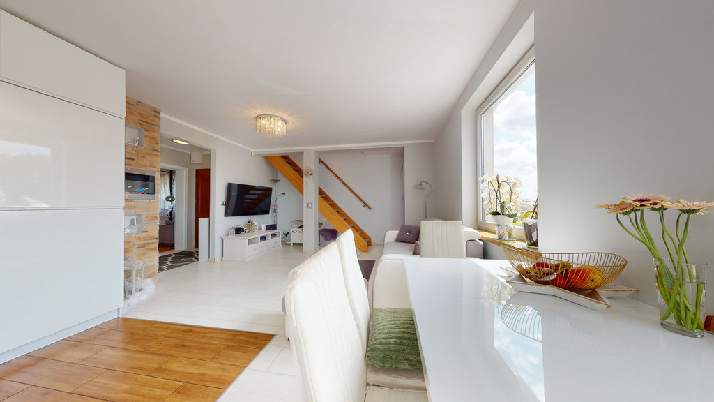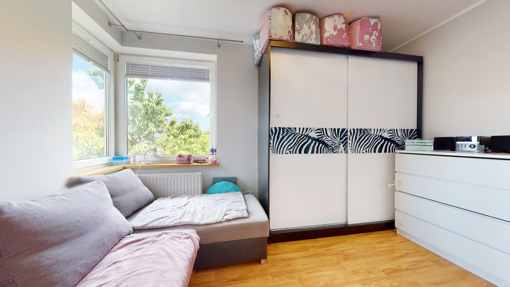A large, spacious and ready to move in duplex apartment in the TOP location of Warszewa. High standard of finish, walls painted in modern colors, newly renovated bathroom, equipped kitchenette. The rooms are very spacious and well arranged. Wooden stairs leading up. A lot of additional places in the form of lockers and built-in wardrobes. PROPERTY IN A 4-FAMILY BUILDING: A cozy two-level apartment with a TOTAL area of 110 m2 (usable area 84.15 m2) consisting of: 1ST LEVEL Living room with kitchenette approx. 26.46 m2 Children's room 11 m2 Bedroom approx. 12 m2 Bathroom approx. 4.2 m2 Hall approx. 4 m2 LEVEL II Bedroom approx. 13 m2 with bathroom approx. 3 m2 Children's room approx. 12 m2 Storage approx. 4 m2 Hall approx. very well maintained on a regular basis Gas heating: approx. PLN 380/month in the winter Electricity according to the individual needs of residents Water Direct contract with ZWiK approx. The apartment is ready to move in. I invite you to the presentation.