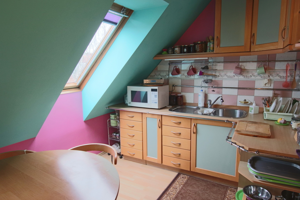 POGODNO large apartment in a low block from 1997, located on the 3rd floor. The total area of the apartment, 88 m2 on the floor, and 70.57 m2 of usable area, the apartment includes a small attic above the apartment, a cellar and a basement, and you can buy a garage under the building for an additional amount of PLN 40,000. The apartment consists of 3 rooms: a living room of the area. 21.92 m2 with access to a large balcony, bedrooms with an area of 16.6 m2, office with an area 13.00 m2, bathrooms with an area of 7.7 m2, a corridor with an area of 13.23 m, from which there is an entrance to the attic (manhole with stairs). The apartment a few years after renovation, smooth walls in pastel colors, paneled floors, kitchen, bathroom and corridor tiles. The price of the apartment includes all fixed buildings, kitchen furniture with household appliances and a “Komandor” wardrobe, other furniture to be agreed. East-West exposure, sun all day throughout the apartment. Recommendable offer due to the location of Stare Pogodno, lots of greenery, close to public transport, shops, schools and kindergartens. I invite you to the presentation.