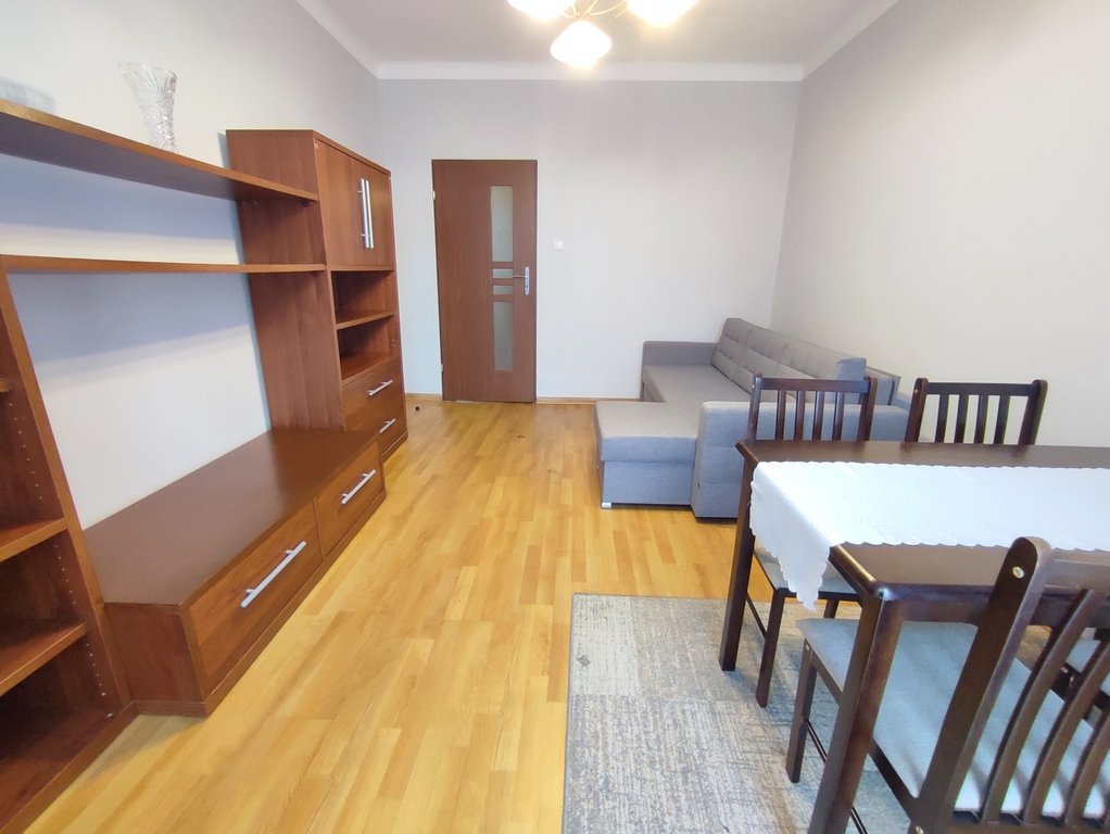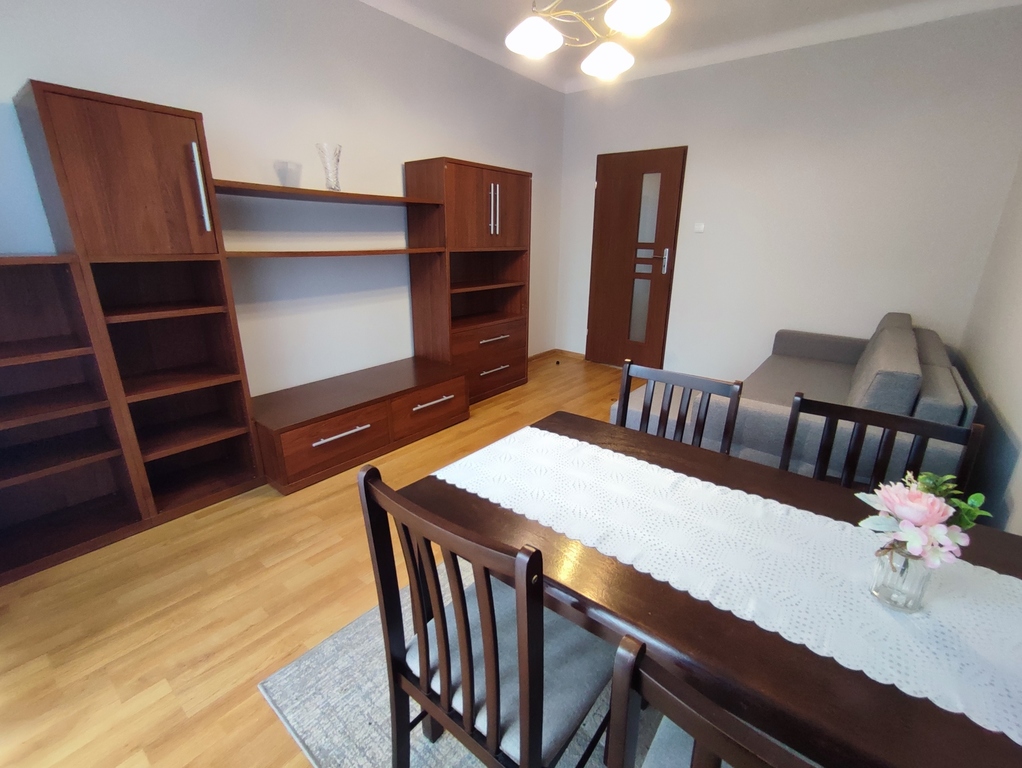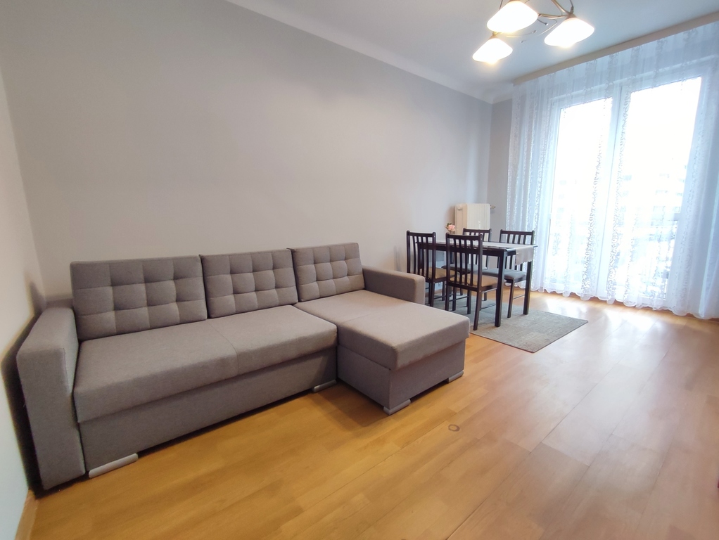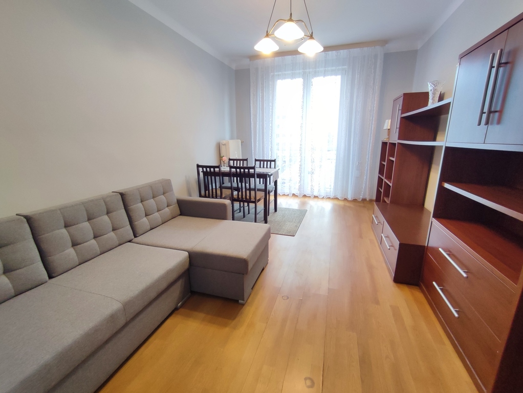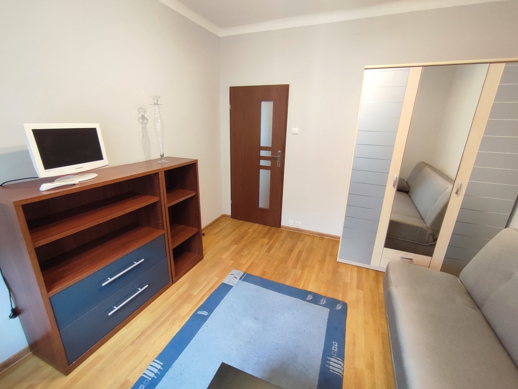 The apartment is available from mid-November 2020 !!! Offer for renting a two-room apartment with an area of 47.55 m2 located on the second floor of a four-story building in the very center of Szczecin. The property is located at Mazurska Street – 40 meters from Lotników Square, where one of the most beautiful monuments in Szczecin is located – the Colleoni monument. There is a lot of greenery in the property's yard (numerous trees and lawns) and a new playground for children. The apartment itself consists of two rooms, 18.50 m2 and 11.95 m2; separate kitchen with a window of 8.50 m2; bathroom with toilet and hall. The apartment is offered for rent after renovation. All installations have been replaced. The rooms have new panels on the floor, smooth and painted walls. In the larger room there is a fold-out sofa and a wall unit, and ultimately it will be equipped with a TV set and a table with chairs. In the smaller room there is another fold-out sofa, a large – wide chest of drawers and a wardrobe with a mirror and drawers. In the kitchen and bathroom, a uniform, modern tiles on the floor. In addition, the kitchen has new kitchen furniture plus an oven, gas hob, two-chamber sink and an electric kettle (the question of inserting a dishwasher remains to be agreed). In the kitchen there is also a fridge and a table with chairs (not visible in the photos). In the bathroom, new tiles on the walls plus a bathtub with tiles, a washbasin with a cupboard, a toilet bowl, a washing machine and a ladder heater. There is also a new gas heater in the bathroom to heat the water. Heating of the apartment – city. All internal and external doors – new. PVC windows (including window doors in a larger room – no balcony). The rent to the community is 450 PLN (including municipal heating, water, garbage and renovation fund). Rental cost – PLN 1350 rent plus PLN 450 community rent plus meters (gas and electricity). Rental conditions: 1) Minimum rental period: 1 year. 2) The required deposit in the amount of one month's rent. 3) Occasional lease agreement with a notary public. Recommendable offer due to the attractive location of the property and the standard of the apartment itself. We recommend.