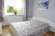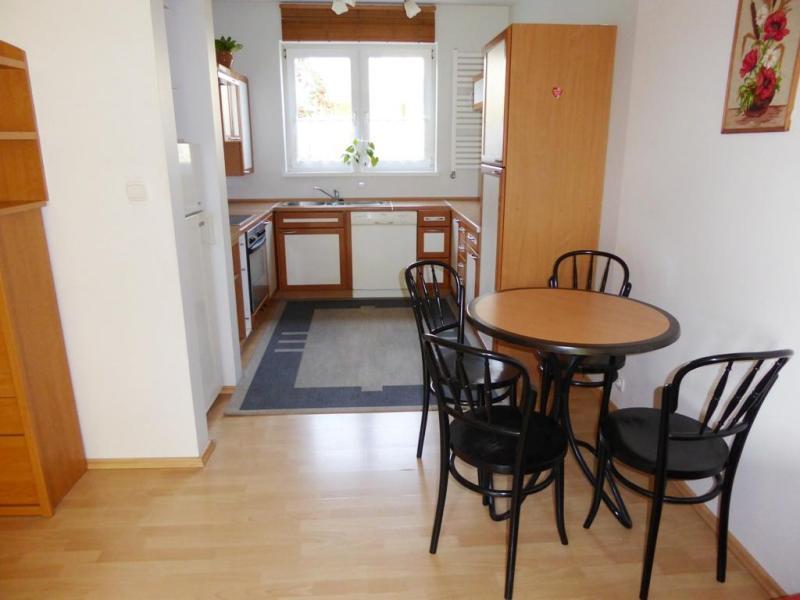 An apartment with a garden and a garage for rent; located on the ground floor of a low-rise multi-family building at ul. Graphite in Mierzyn. The area of 52 m2 consists of a living room with kitchen, bedroom and bathroom. The rooms on the floors panels, walls and ceilings smoothed and painted. The apartment is in perfect condition, clean and freshly painted after the previous tenant. The living room has large windows with access to the balcony and garden – secured with anti-burglary roller blinds. In the kitchen, there are panels on the floor, on the wall between the cabinets and the countertop, there is a glazed apron. Kitchen with a window, furnished – built-in cabinets, equipped with a WHIRPOOL dishwasher and an electric cooker with an oven JUNO and a fridge with a freezer. Bathroom in tiles and terracotta, with a large, corner bathtub and bidet, and a BOSCH washing machine. The apartment is furnished – the bedroom has a large double bed, a capacious wardrobe and a dressing table; in the living room – a sofa bed, two armchairs and a segment. The apartment includes a garden with an area of approx. 50 m2, with direct descent from the apartment. The apartment is rented together with a large garage for 2 cars, located under the building. The rent is PLN 2,300 + PLN 500 for the garage. Community rent 340 PLN; additionally payable gas and electricity according to meter readings. Deposit required.