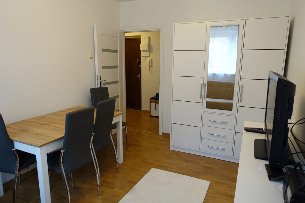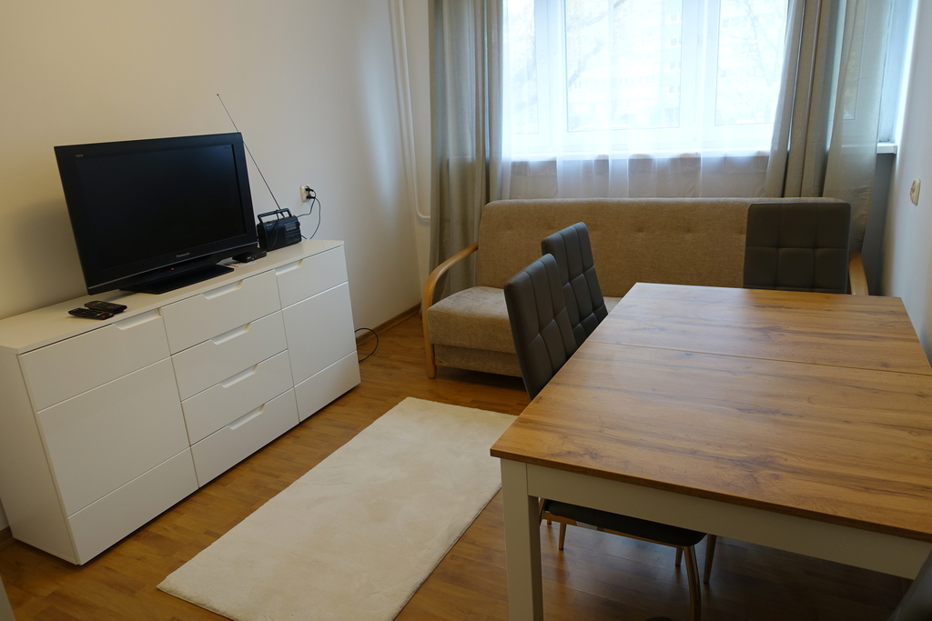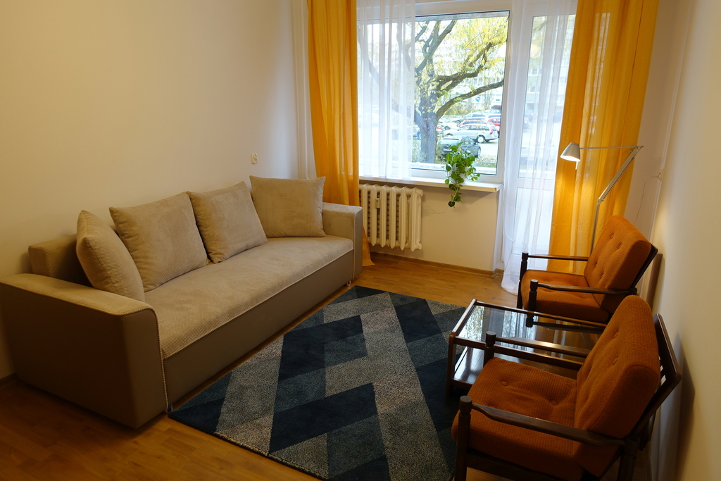 A two-room apartment after renovation, furnished and equipped, with an area of 45.3 m2, located on the first floor of a skyscraper on the estate Kalina in Szczecin. Cooperative ownership right to premises enabling the purchase by citizens of countries outside the European Union. Currently rented until December, the possibility of taking over the lease with the amount of PLN 2,000 plus rent to the cooperative and utilities. Two layout rooms 18 m2 and 12 m2, separate kitchen with an area of 4 m2, bathroom with toilet, hall and balcony. Kitchen with built-in furniture, fridge-freezer, gas cooker with oven. In the smaller room there is a sofa bed, a table with chairs, a wardrobe, a chest of drawers, and a TV set. The living room has a sofa, two armchairs, a table and a wall unit. In the hall there is a built-in wardrobe. Bathroom in modern tiles and terracotta with a shower, toilet, sink and washing machine. Panels on the floor in the rooms and hall. Terracotta in the kitchen and bathroom. Rent PLN 400. District heating and hot water.