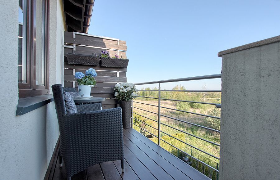 – On the balcony, a new wooden board from the exotic Merbau tree, exceptionally resistant to changing weather conditions