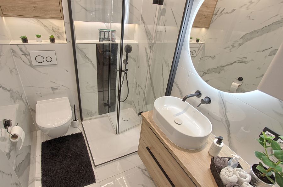 – a modern bathroom with a shower, made using the highest quality materials,