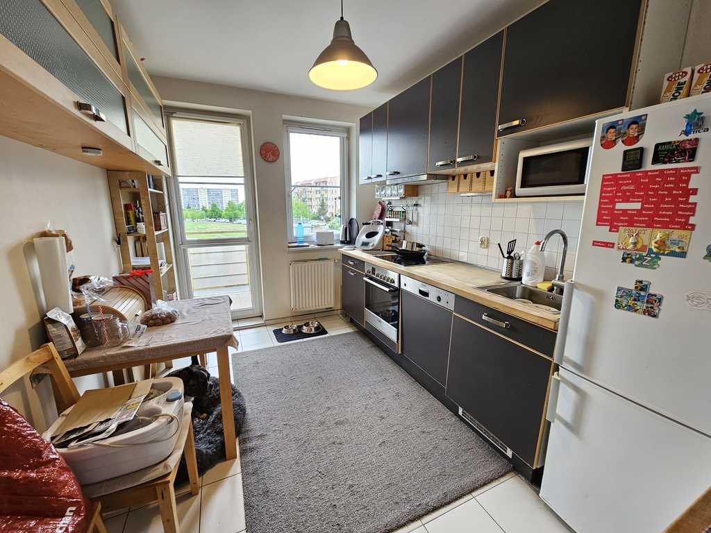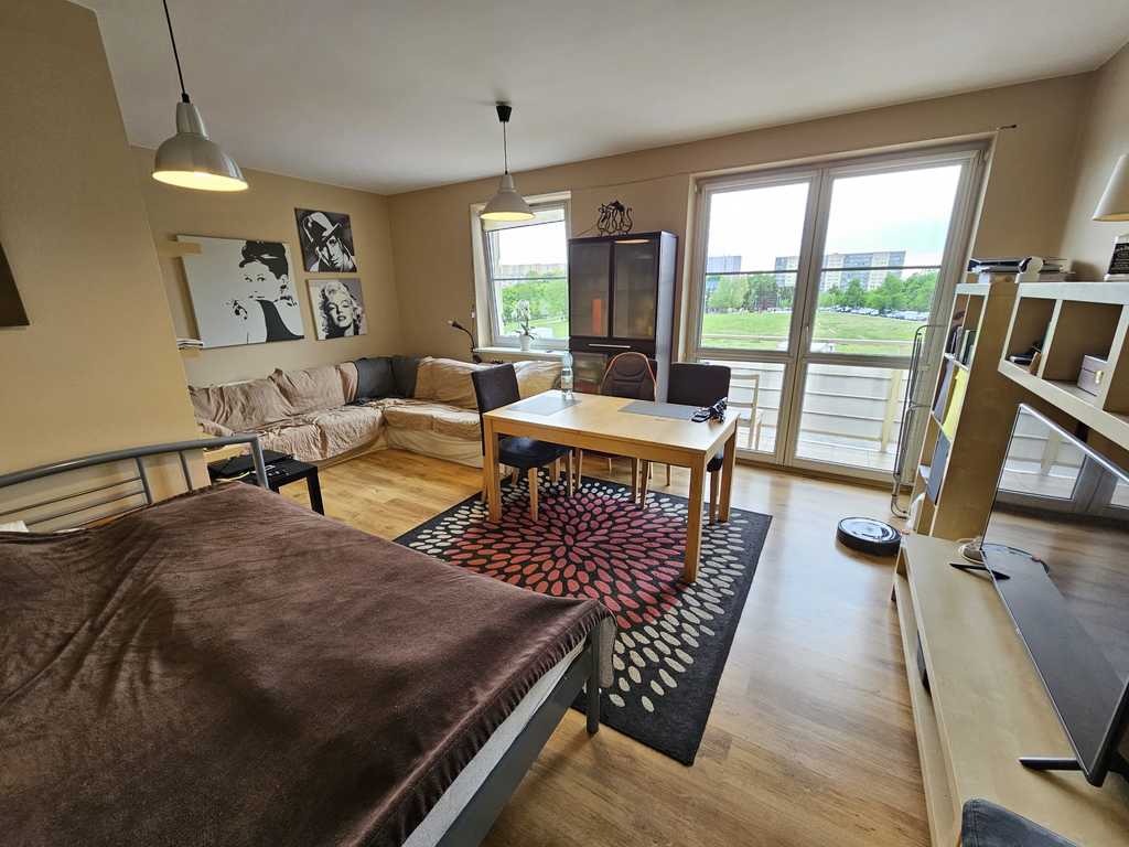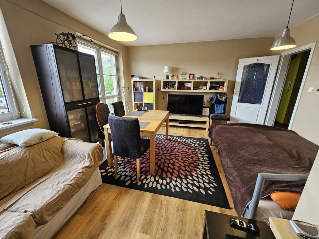 A neat and spacious 3-room flat with an area of 68.3 m2 located in Osiedle Majowe on the 1st floor of a 3-story building from 2006. It is possible to buy a garage for PLN 70,000 additionally (in a separate land and mortgage register). The place is in a good standard, to be refreshed. The property consists of a living room 23m2, 2 bedrooms 13 and 10m2, kitchen 10m2, bathroom 5m2, toilet 2m2 and hall 8m2. From the living room and kitchen there is access to a large balcony. The kitchen is separately furnished with a window and is fully equipped with a fridge, an electric cooker and a dishwasher. The apartment has a bathroom with a shower and toilet, and a second separate toilet. Panels on the floor in the rooms. Plain painted walls. An offer worth recommending due to its standard and great location on the right bank. The rent is PLN 550/month, garage rent is PLN 80/month. Heating and hot water with SEC. Release date to be agreed. We invite you!