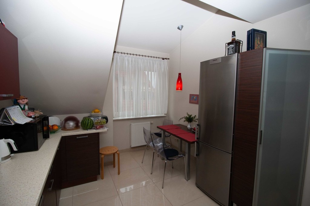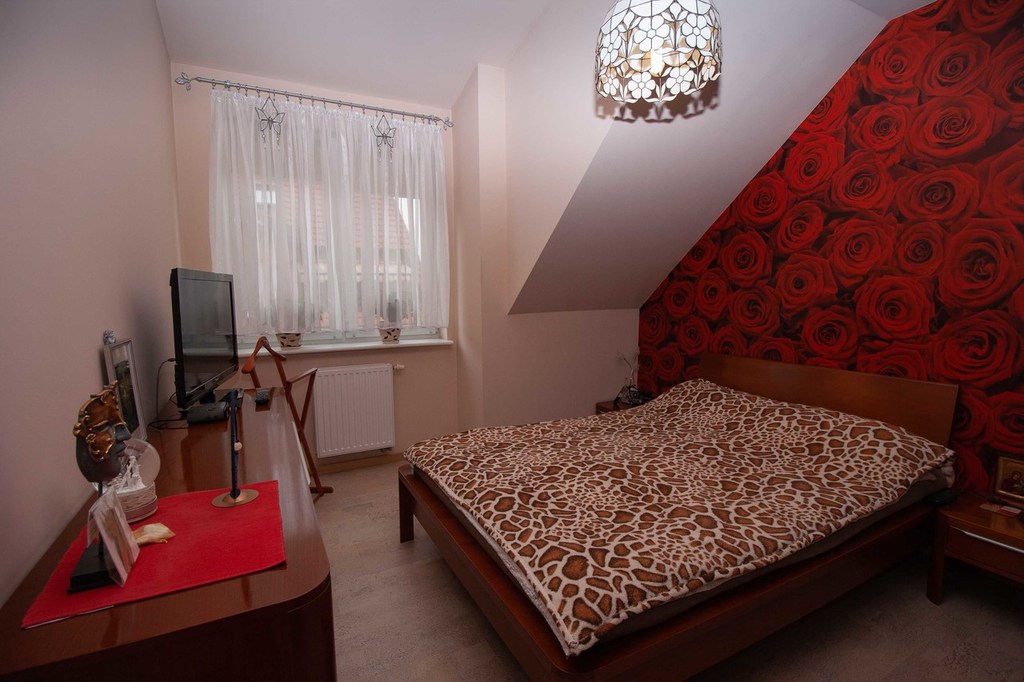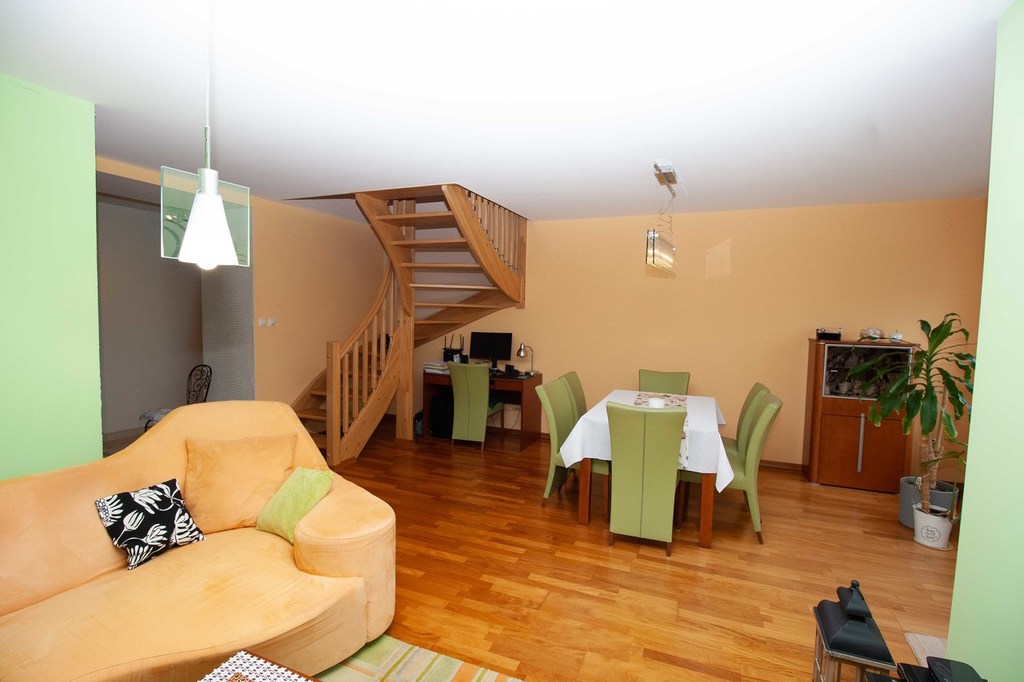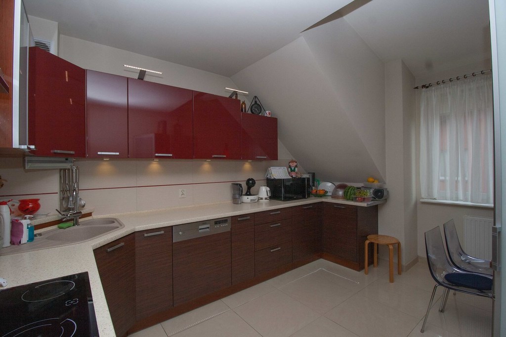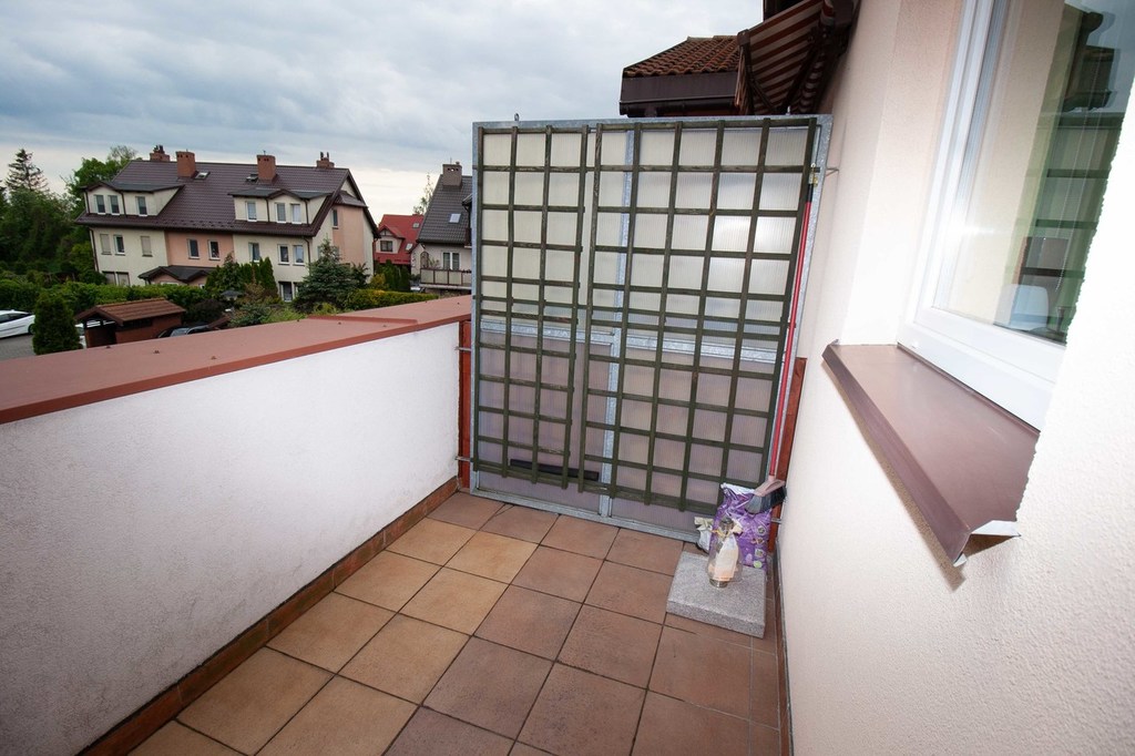 A two-level spacious apartment with a usable area of 91.33 m2 (total – 105.53 m2) in a new low block in a quiet part of the Gumieńce estate. The estate is closed and monitored, with public parking spaces. The neighborhood is calm, green and safe. Most of the furniture and equipment can remain in the price of the property. 1. The first level with an area of 69.15 m2 includes: – A spacious living room open to the hall with an area of 30.15 m2 with access to a terraced balcony of 5.34 m2 on the south side. On the floor wooden board Merbau (exotic wood). Walls smoothed and painted in pastel colors. – A separate bright kitchen with a dining area (11.56 m2). Tiles on the floor. – Bathroom with toilet (4.25 m2), tiles and terracotta, shower cabin. – Bedroom (11.56 m2), natural cork panels on the floor, north side. – Hall with a built-in wardrobe (11.70 m2), tiles on the floor. 2. A wooden staircase made of solid beech leads to the second level. The floor area is 22.18 m2. – Open space in which you can separate 2 rooms (17m2). – Bathroom with toilet (3.04 m2) with bathtub – Bright wardrobe (2 m2). PVC windows, wooden Velux on the first floor. Witex anti-burglary external doors, internal Ports. Central heating and hot water from a two-circuit gas furnace. Rent to the administrator in the amount of PLN 525 per month. The property is located in a very good spot with good access to the city center, both by car and public transport. An intimate, quiet, nicely developed estate with a large number of plantings, but at the same time safe with a gate with a remote control. Nearby shops, primary school, post office, public transport. I cordially invite you to the presentation.