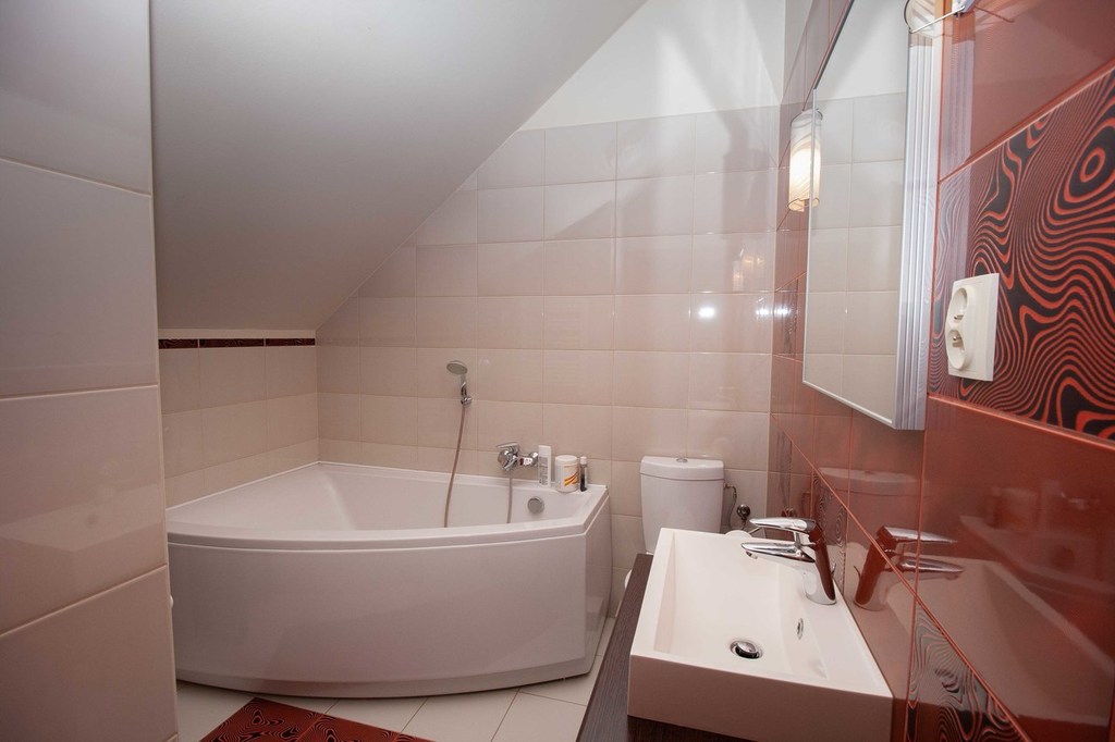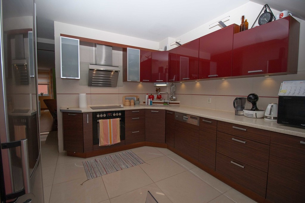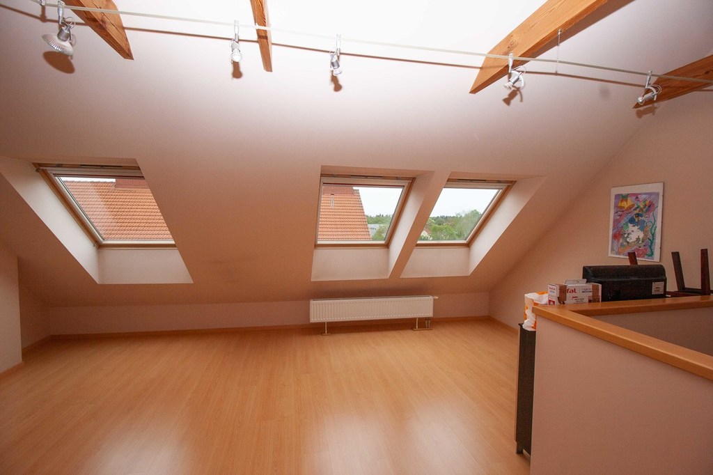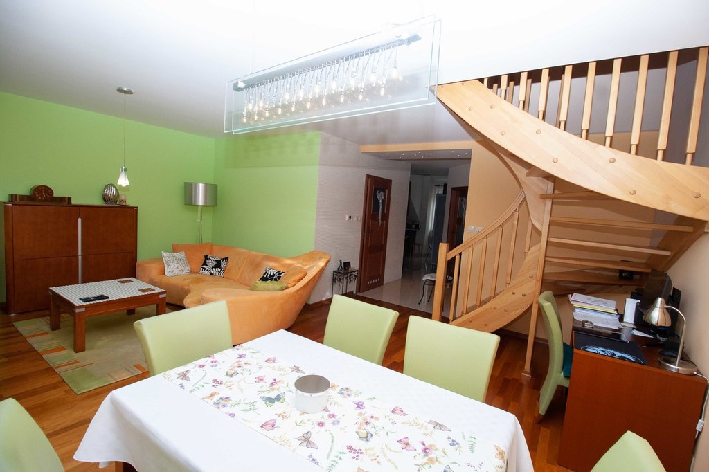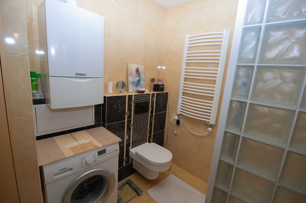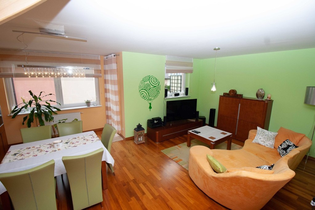 A two-level spacious apartment with a usable area of 91.33 m2 (total – 105.53 m2) in a new low block in a quiet part of the Gumieńce estate. The estate is closed and monitored, with public parking spaces. The neighborhood is calm, green and safe. Most of the furniture and equipment can remain in the price of the property. 1. The first level with an area of 69.15 m2 includes: – A spacious living room open to the hall with an area of 30.15 m2 with access to a terraced balcony of 5.34 m2 on the south side. On the floor wooden board Merbau (exotic wood). Walls smoothed and painted in pastel colors. – A separate bright kitchen with a dining area (11.56 m2). Tiles on the floor. – Bathroom with toilet (4.25 m2), tiles and terracotta, shower cabin. – Bedroom (11.56 m2), natural cork panels on the floor, north side. – Hall with a built-in wardrobe (11.70 m2), tiles on the floor. 2. A wooden staircase made of solid beech leads to the second level. The floor area is 22.18 m2. – Open space in which you can separate 2 rooms (17m2). – Bathroom with toilet (3.04 m2) with bathtub – Bright wardrobe (2 m2). PVC windows, wooden Velux on the first floor. Witex anti-burglary external doors, internal Ports. Central heating and hot water from a two-circuit gas furnace. Rent to the administrator in the amount of PLN 525 per month. The property is located in a very good spot with good access to the city center, both by car and public transport. An intimate, quiet, nicely developed estate with a large number of plantings, but at the same time safe with a gate with a remote control. Nearby shops, primary school, post office, public transport. I cordially invite you to the presentation.