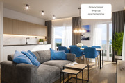 Glazed balustrades and a thresholdless exit to the terrace optically enlarge the area of the apartment