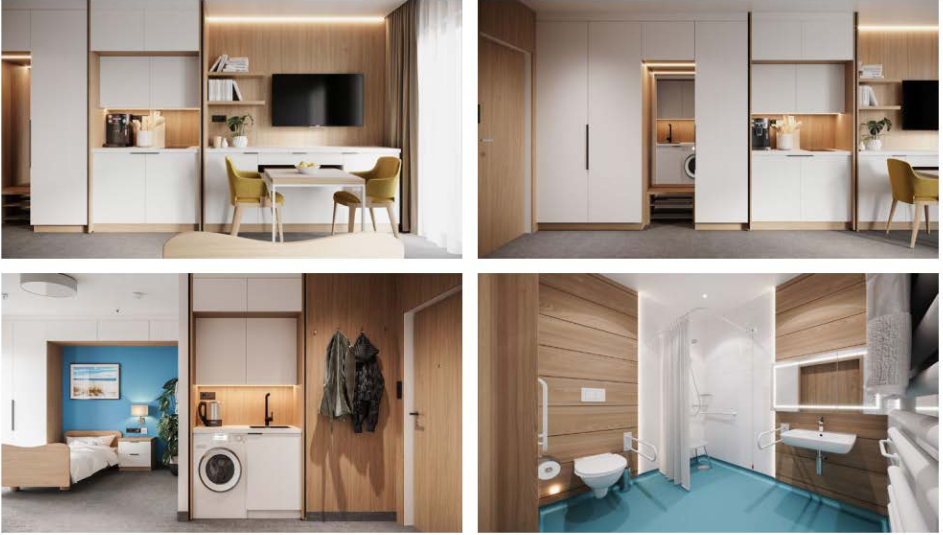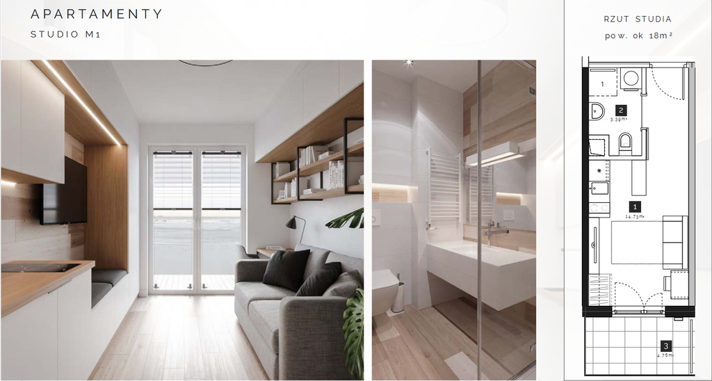 well-thought-out layouts of the apartments – optimal use of space in all apartments there are comfortable bathrooms equipped with showers (type M1) or a bathtub with a shower option (type M2 and M3) – they can be adapted to the needs of the disabled
