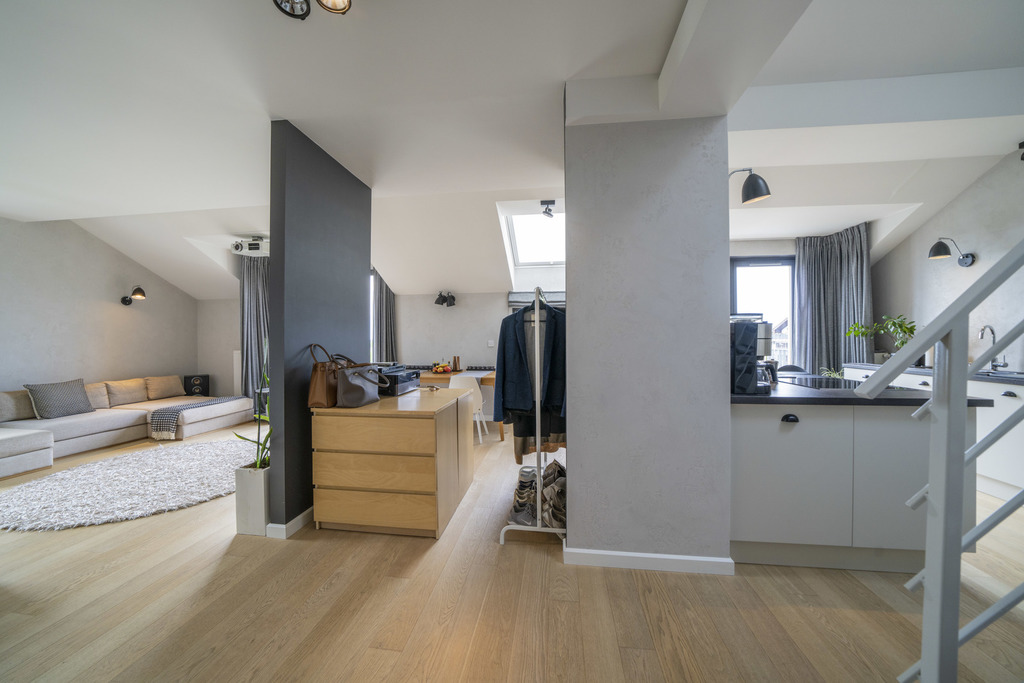 A 4-room, two-level, modern apartment for rent, located in Warszewo. The property is located on the second floor, in a modern, low-rise building completed in 2015. The apartment with an area of 88.64 m2 on the first level consists of: a spacious living room, open large kitchen (for use: Siemens oven with steam cooking function) , dishwasher, Sharp fridge, electric hob, dining area with a table, bathroom and a room with a large separate wardrobe built in the carpentry system.The space is enlarged by two beautiful balconies (one has an exit from the living room, the other from the kitchen). On the first floor there is a bedroom, wardrobe and study.The upper level of the apartment has air conditioning.The apartment is interestingly designed to give the impression of a loft space, with lots of green houseplants.The combination of the first and second floors with an impressive mezzanine makes a great impression.The property is modern but cozy.The space is elegant and well-maintained All rooms are fully furnished and equipped, and the property includes an underground garage. The property has gas heating (combination stove, thermostat control, steel radiators, panel radiators) and water from the municipal water supply. The rent is PLN 5,000 + administrative rent (apartment and parking space) PLN 531 (PLN 480 + PLN 51) + gas and electricity according to consumption.