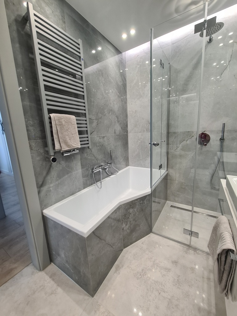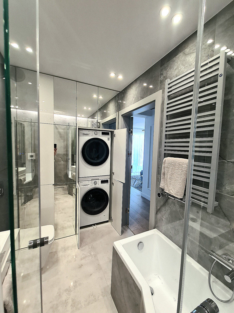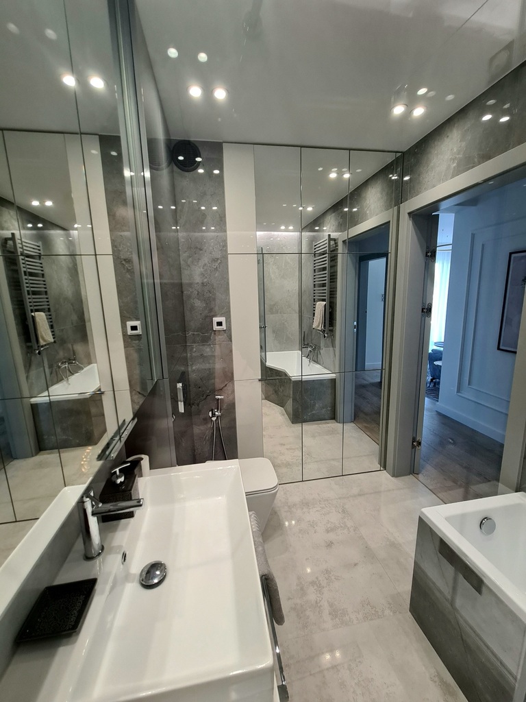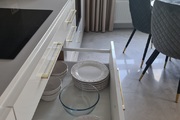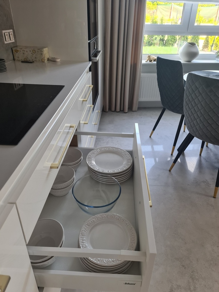 An elegant 3-room apartment for rent in a great location of Szczecin. The building will be put into use in November 2022. The apartment with an area of 67.46 m2 is decorated in a modern style. The property consists of 3 rooms: 2 bedrooms plus a living room with a dining area and a kitchenette equipped with kitchen furniture and necessary household appliances, the bathroom is equipped with a washing machine and a dryer, as well as electronically controlled underfloor heating, a bathtub, a shower, and a toilet. Calm and quiet neighborhood. The apartment is located on the ground floor and has a beautifully landscaped garden. Easy access to the city center by bus lines 88.98, 223.224, 226.244, 808.908. The apartment is fully furnished and finished with the highest quality materials. The tenant has a large 12m terrace with garden furniture. District heating with SEC (separate sub-meters, payable only during the heating season). City water – settled in the rent according to the indications of the sub-meter. The rent is PLN 4700 (including a parking space in the garage under the building) + administrative rent PLN 396 (including advance payments for CW, ZW, garbage) + electricity according to consumption. The apartment has active Internet (600 mb/s) and 138 TV channels (price: PLN 86). I cordially invite you to the presentation.