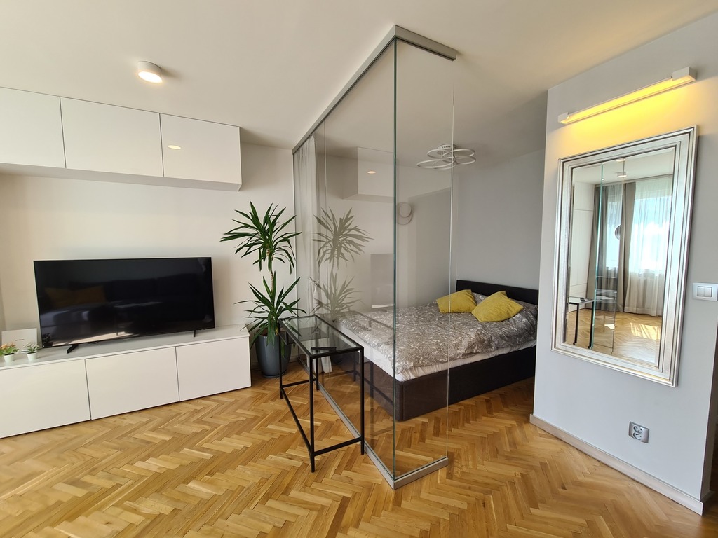 Beautifully furnished and equipped studio apartment with an area of 38 m2 on the sixth floor in a skyscraper in the Reda estate. The apartment is fully furnished and equipped with furniture and electronics and household appliances, decorated in a modern style with a bed covered with glass that can be covered. Parking spaces in the block, close to the center. A new elevator in the building. Nearby there are local shops, a pharmacy, a clinic, a bus stop and the University. The rent is PLN 2,300 + rent (heating, advance payments for water, elevator, gas, social fund) and electricity according to consumption. Contract for min. year, non-smokers. I invite you to the presentation.