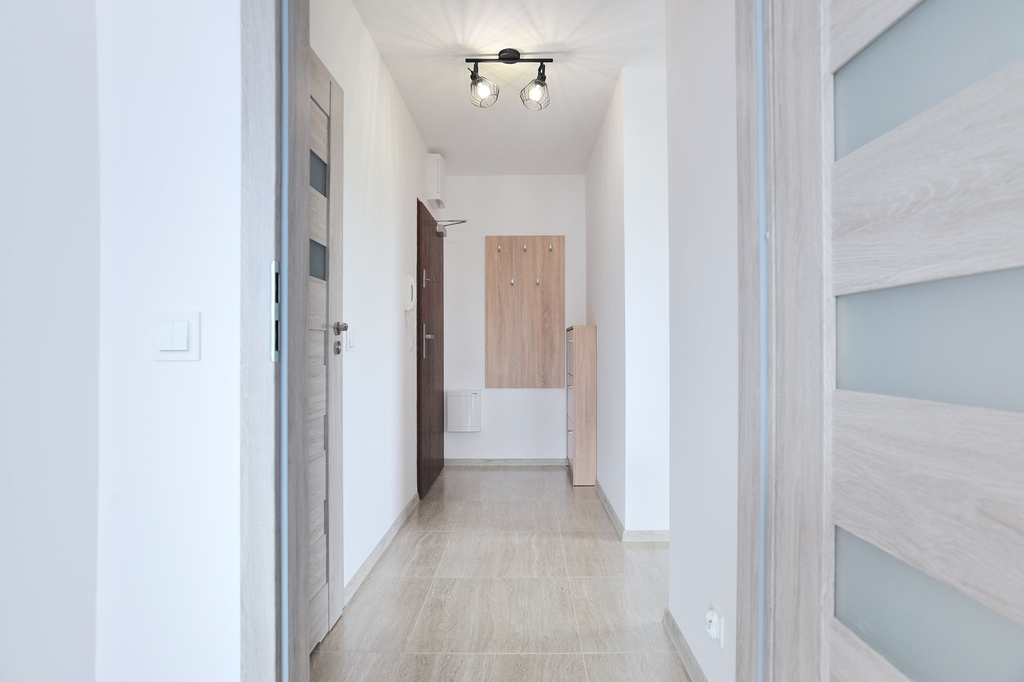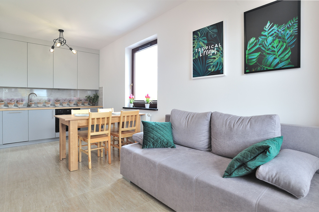 Only with us we present you the offer of renting an apartment located at ul. Głowacki on the estate. New town. APARTMENT DESCRIPTION: For rent an apartment located on the fourth floor of a fifth-storey apartment building from 2021. There is a silent elevator in the building. The total area of the apartment is 32.96 m2, it is fully furnished and equipped. Heating and hot water from the municipal network. The apartment has a hall, living room with kitchenette (from which there is an exit to the balcony), bedroom, bathroom with toilet. The bathroom is equipped with a shower, toilet, washbasin, ladder radiator. The kitchen is furnished and equipped with household appliances – induction hob, electric oven, fridge-freezer, dishwasher. The living room has a fold-out corner, chest of drawers, bookcase, TV. The dining area consists of a table with four chairs. From here there is also an exit to a large balcony, thanks to which future tenants will be able to enjoy a private outdoor space. The bedroom has a bed with a comfortable mattress, two bedside tables with lamps, a set of cabinets with a shelf. SURROUNDINGS: The apartment is located in the Nowe Miasto housing estate. There are shops, a fitness club, universities and a school complex nearby. The proximity to public transport stops (both tram and bus) makes it easy for non-motorized people to move around the city. COSTS: PLN 394.73 of administrative rent and electricity charges according to consumption should be added to the PLN 2,400 rent. I highly recommend it because of the location and high standard of the apartment. Feel free to contact me by phone on business days from 9 a.m. to 4 p.m. (on other days and hours, please text me).